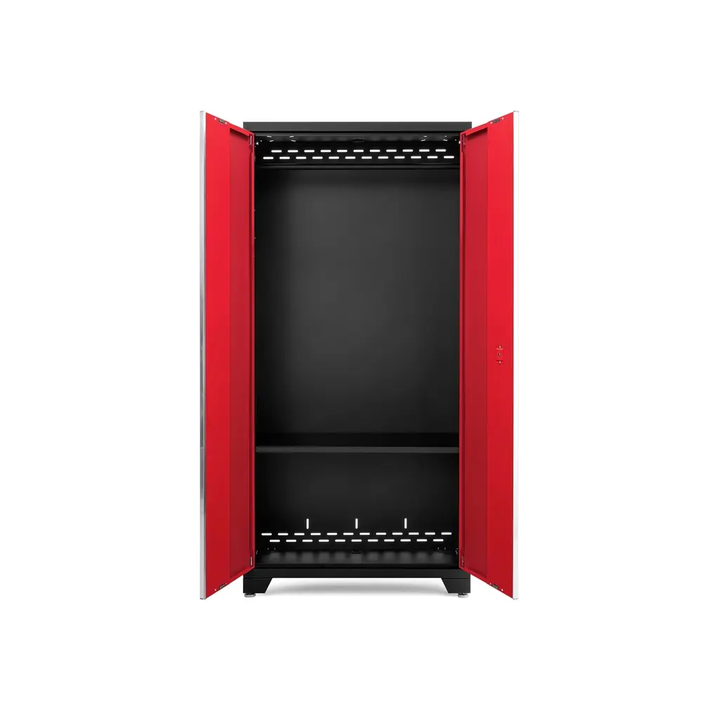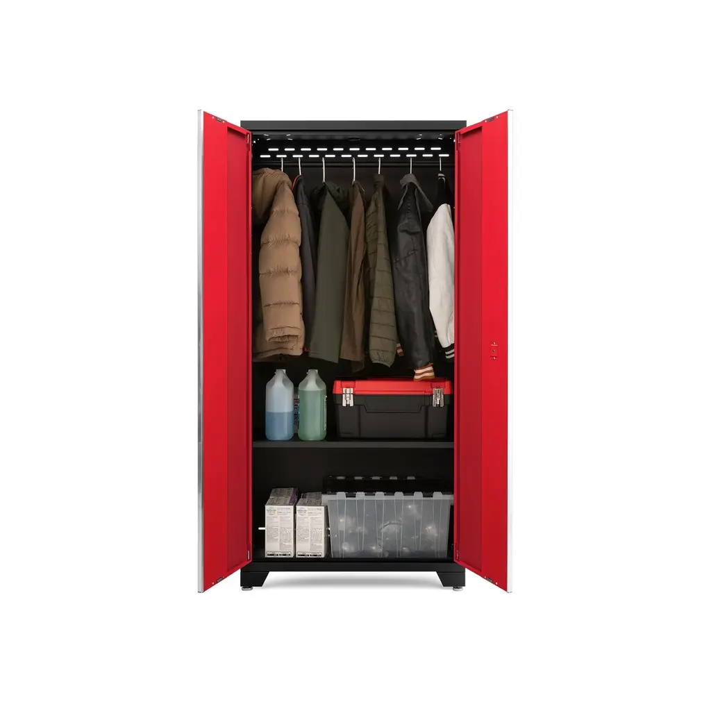 The Bold Series 36 In. Multi-Use Locker instantly upgrades the look of your garage, workshop, mudroom or other space with the versatile storage solution you need to organize just about anything. Built with welded steel frames and fully-lockable doors, these lockers provide spacious, secure storage for everything from sports equipment and power tools to gardening supplies. The durable powder-coat paint finish not only looks?great, but also?improves the corrosion resistance of the cabinet and stands up to the demands of everyday use. Integrated vents improve air flow to help to dry and air out sports equipment like football pads and hockey gear. Easily attach your own fan or filter onto the vents to further improve air circulation. Full-length integrated handles allow quick access to stored items and adjustable steel shelves give you the flexibility to organize objects in a variety of sizes. Take control and organize in style with the Bold Series 36 In. Multi-Use Locker.