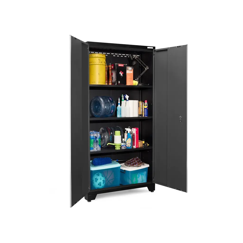Upgrade the look and organization of your garage with a Bold Series 42 in. Locker. Built with heavy-gauge steel frames for added strength, these cabinets are ideal for storing sports equipment, tools and seasonal décor. Lockable doors with full-length aluminum handles keep your belongings secure, with a flat front profile for maximum clearance for vehicles. Three height-adjustable steel shelves offer customizable storage for items of all sizes, and the included closet rod converts your Locker to a hanging storage closet, great for outerwear and seasonal clothing. The durable paint finish is scratch and rust resistant, to hold up to the tough conditions of your garage. For heavy-duty steel storage with a clean, modern look, the Bold Series 42 in. Locker is a great solution for an organized space.
