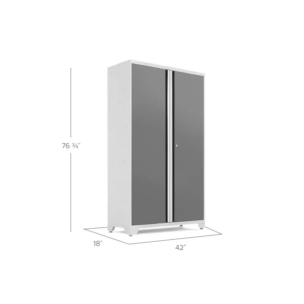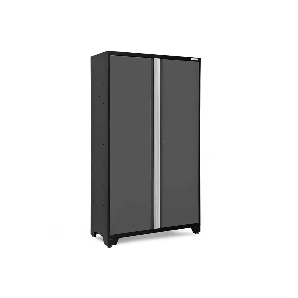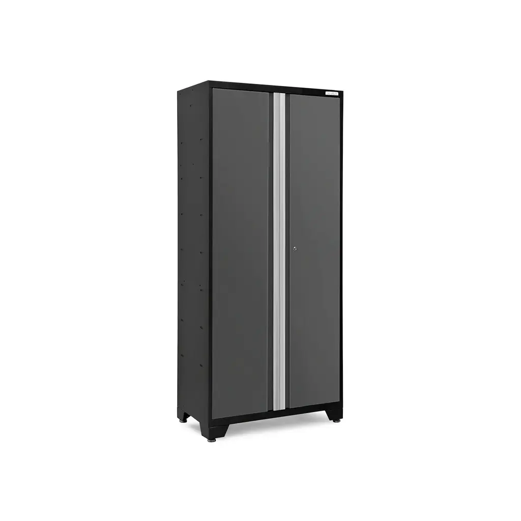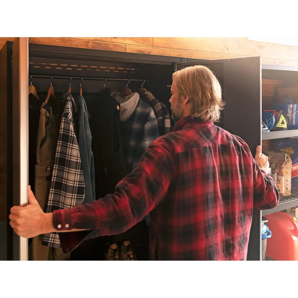Upgrade the look and organization of your garage with a Bold Series 42 in. Locker. Built with heavy-gauge steel frames for added strength, these cabinets are ideal for storing sports equipment, tools and seasonal décor. Lockable doors with full-length aluminum handles keep your belongings secure, with a flat front profile for maximum clearance for vehicles. Three height-adjustable steel shelves offer customizable storage for items of all sizes, and the included closet rod converts your Locker to a hanging storage closet, great for outerwear and seasonal clothing. The durable paint finish is scratch and rust resistant, to hold up to the tough conditions of your garage. For heavy-duty steel storage with a clean, modern look, the Bold Series 42 in. Locker is a great solution for an organized space.