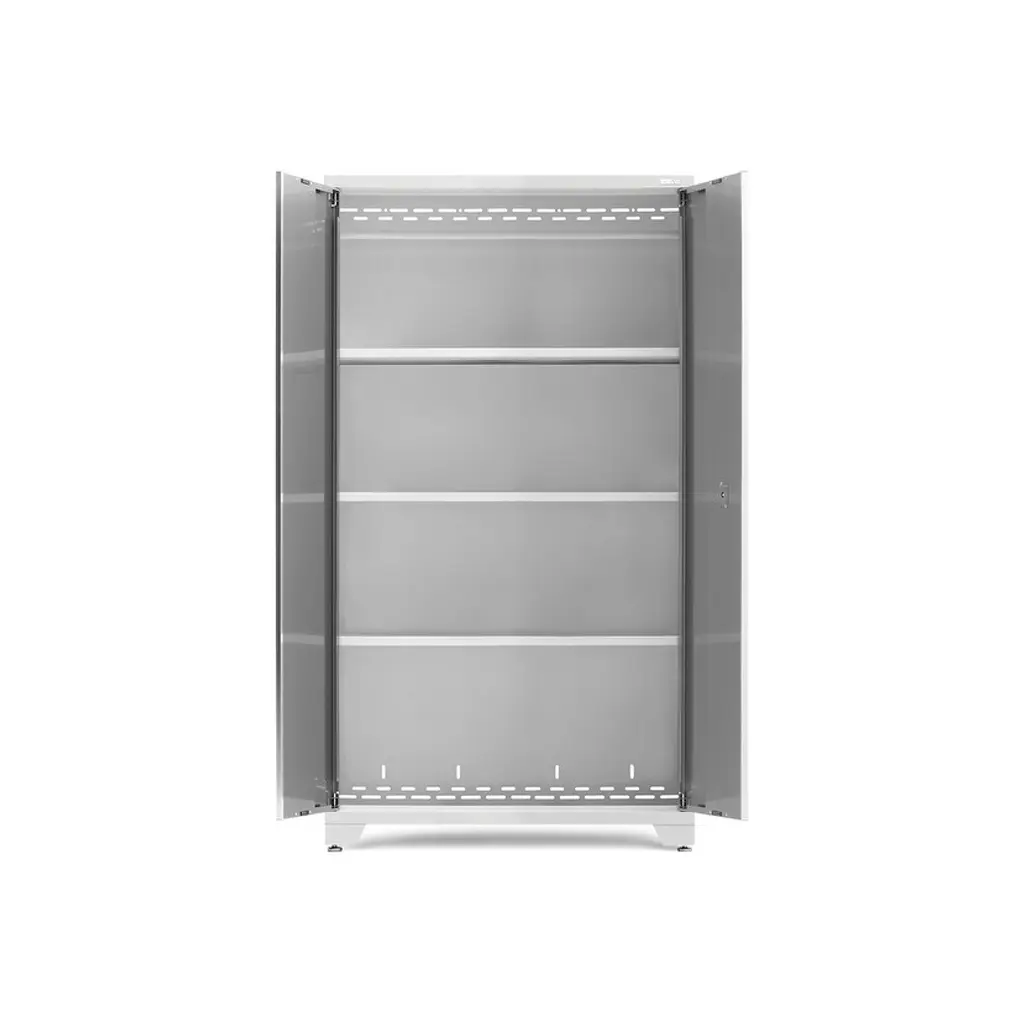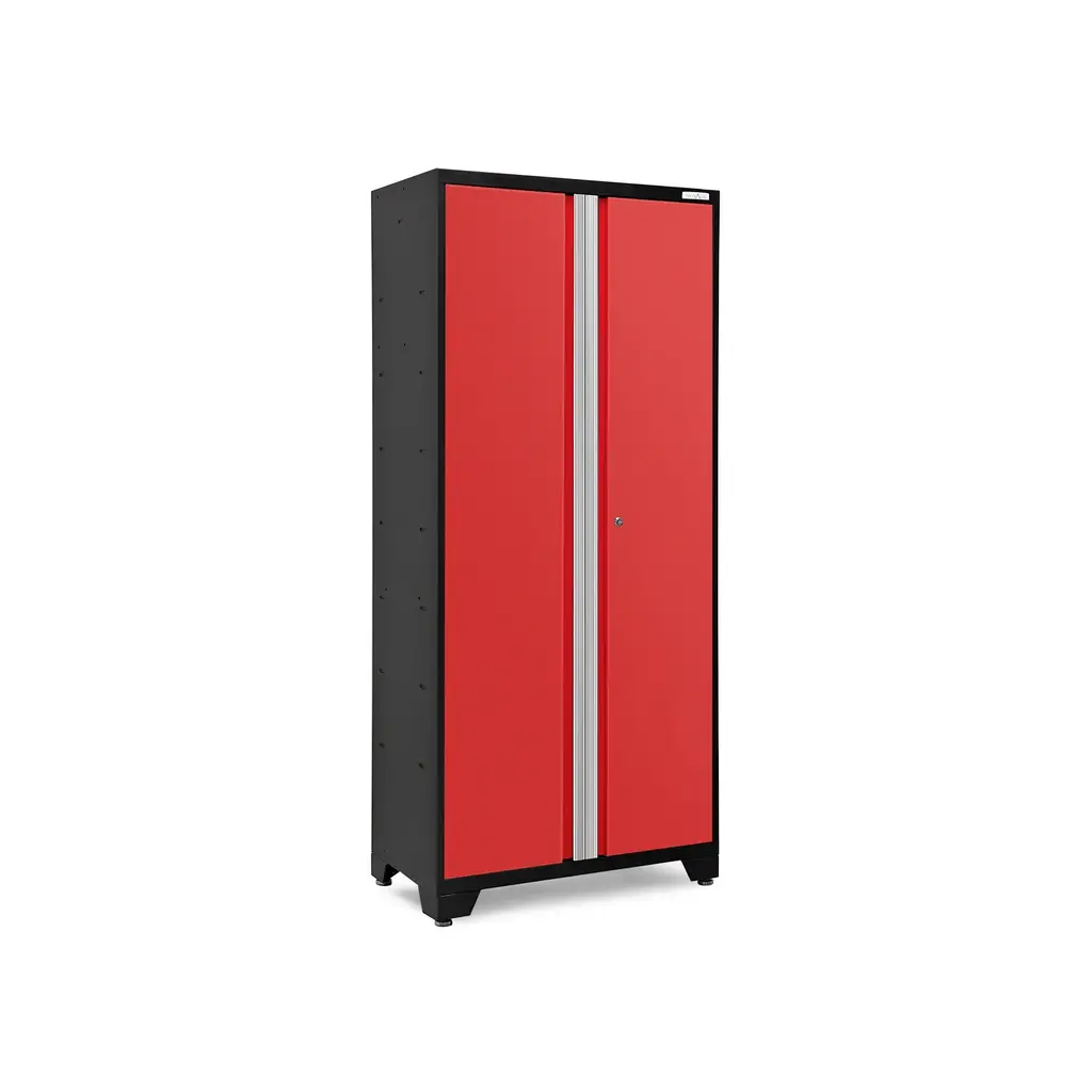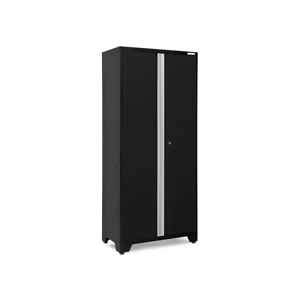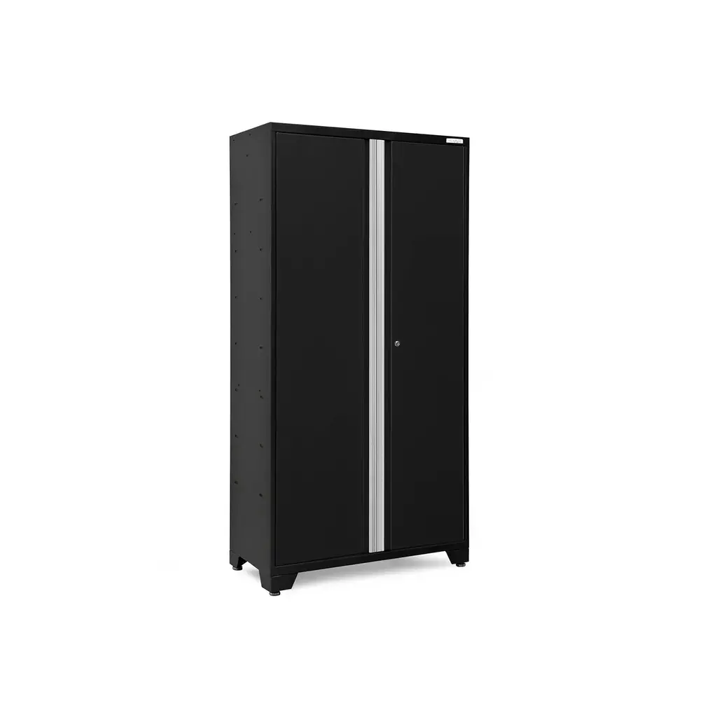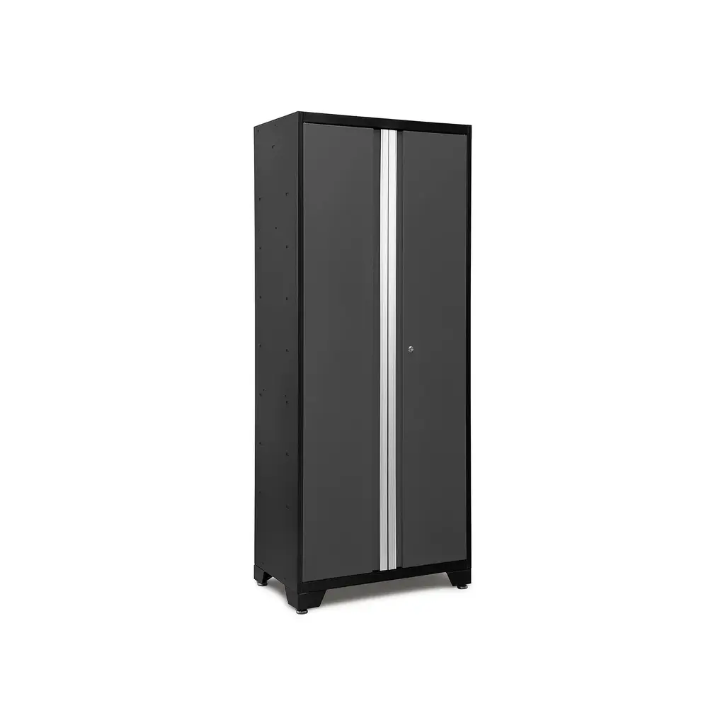 Upgrade the look and organization of your garage with a Bold Series 42 in. Locker. Built with heavy-gauge steel frames for added strength, these cabinets are ideal for storing sports equipment, tools and seasonal décor. Lockable doors with full-length aluminum handles keep your belongings secure, with a flat front profile for maximum clearance for vehicles. Three height-adjustable steel shelves offer customizable storage for items of all sizes, and the included closet rod converts your Locker to a hanging storage closet, great for outerwear and seasonal clothing. The durable paint finish is scratch and rust resistant, to hold up to the tough conditions of your garage. For heavy-duty steel storage with a clean, modern look, the Bold Series 42 in. Locker is a great solution for an organized space.