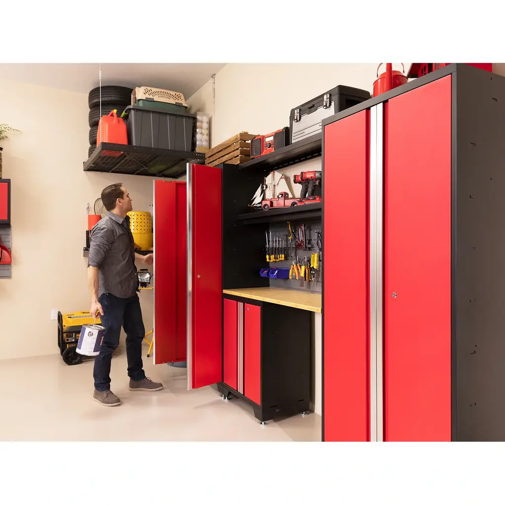 The Bold Series 48 In. Multi-Use Locker instantly upgrades the look of your garage, workshop, mudroom or other space with the versatile storage solution you need to organize just about anything. Built with welded steel frames and fully-lockable doors, these lockers provide spacious, secure storage for everything from sports equipment and power tools to gardening supplies. The durable powder-coat paint finish not only looks?great, but also?improves the corrosion resistance of the cabinet and stands up to the demands of everyday use. Integrated vents improve air flow to help to dry and air out sports equipment like football pads and hockey gear. Easily attach your own fan or filter onto the vents to further improve air circulation. Full-length integrated handles allow quick access to stored items and adjustable steel shelves give you the flexibility to organize objects in a variety of sizes. Take control and organize in style with the Bold Series 48 In. Multi-Use Locker.