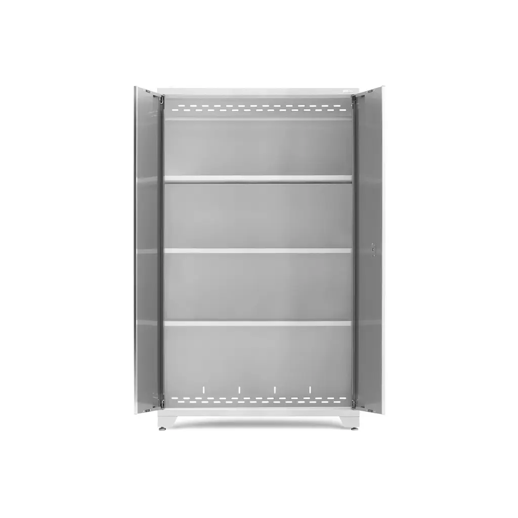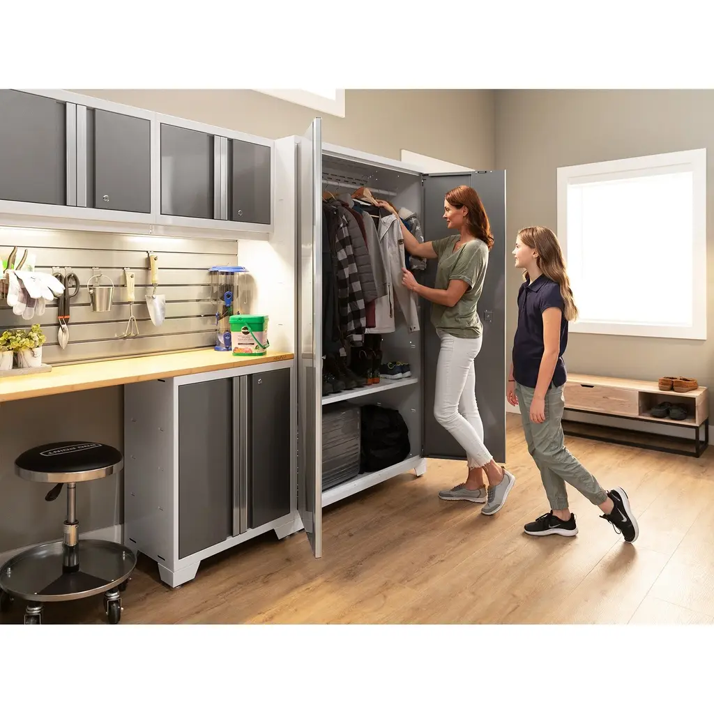 The Bold Series 48 In. Multi-Use Locker instantly upgrades the look of your garage, workshop, mudroom or other space with the versatile storage solution you need to organize just about anything. Built with welded steel frames and fully-lockable doors, these lockers provide spacious, secure storage for everything from sports equipment and power tools to gardening supplies. The durable powder-coat paint finish not only looks?great, but also?improves the corrosion resistance of the cabinet and stands up to the demands of everyday use. Integrated vents improve air flow to help to dry and air out sports equipment like football pads and hockey gear. Easily attach your own fan or filter onto the vents to further improve air circulation. Full-length integrated handles allow quick access to stored items and adjustable steel shelves give you the flexibility to organize objects in a variety of sizes. Take control and organize in style with the Bold Series 48 In. Multi-Use Locker.