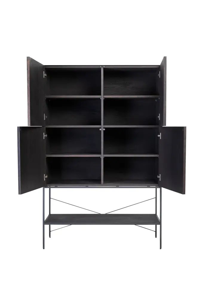 The Illusion Cabinet by Versmissen is the perfect organization essential for any living space, bringing both style and convenience. It boasts a black steel frame with an oak parquet in a natural dark finish. It features four doors with ample storage space inside, perfect for keeping essentials organized. The undershelf provides extra space for other items, adding practicality to its simple form.