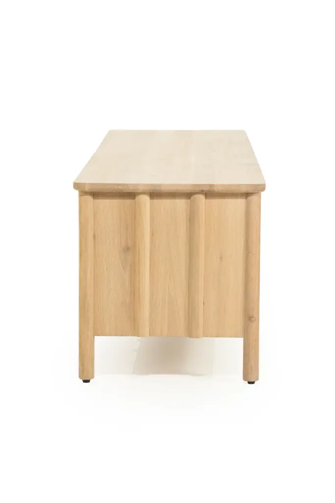 Elevate your living space with the Eleonora Jake 4-door TV cabinet crafted from exquisite oak wood. Experience the beauty and durability of this luxurious piece, perfect for elevating your entertainment setup. Its sleek design and ample storage make it the ideal addition to any elegant home.