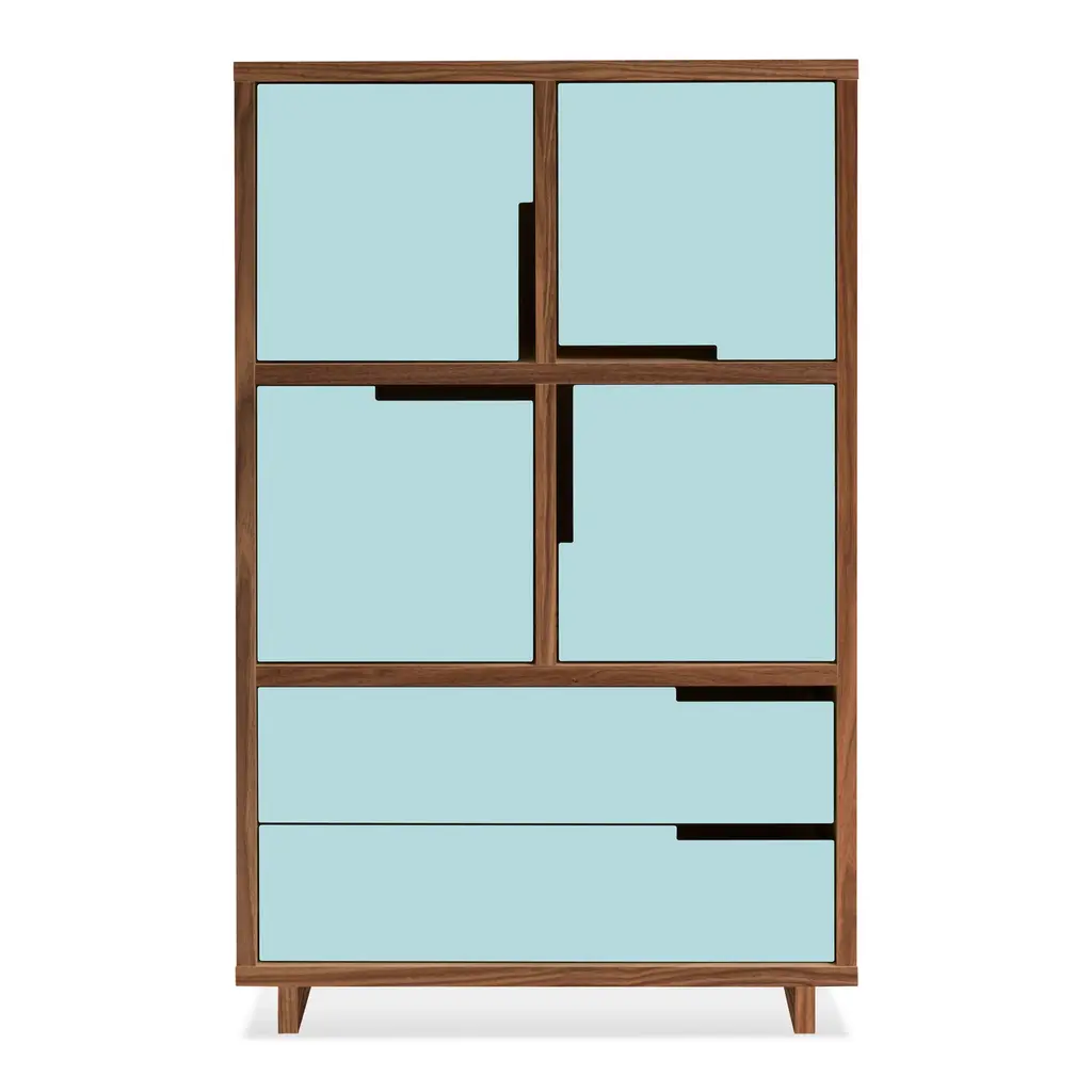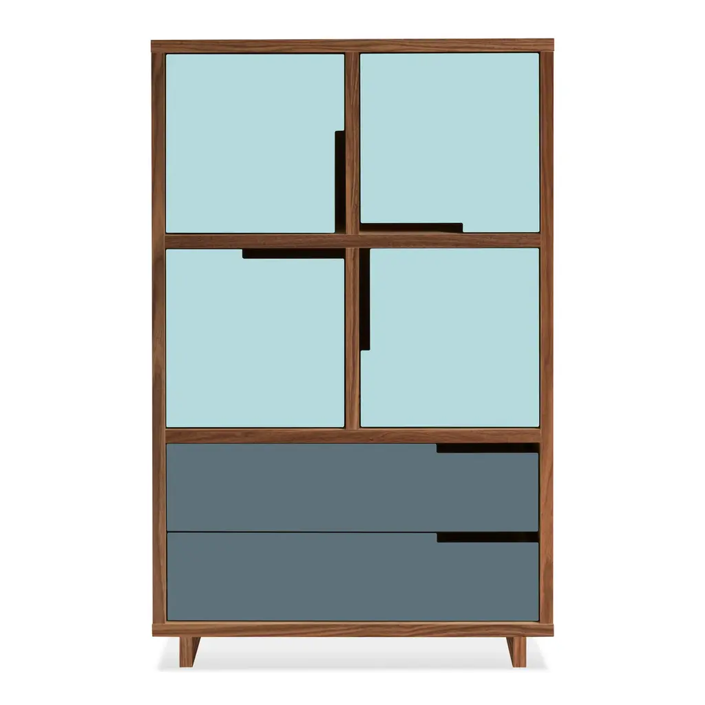 This exquisite open cabinet belongs to the Ocean Collection of clean and minimalist designs marked by a soothing palette of beige and light blue shades. Timeless and versatile, it is exquisitely fashioned of lacquered wood and metal. Please inquire with the Concierge for more information on materials, finishes, and possible customization options.