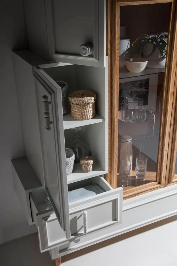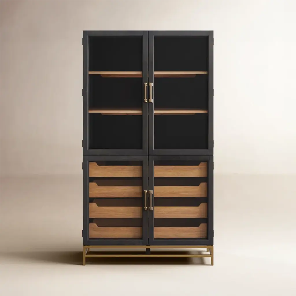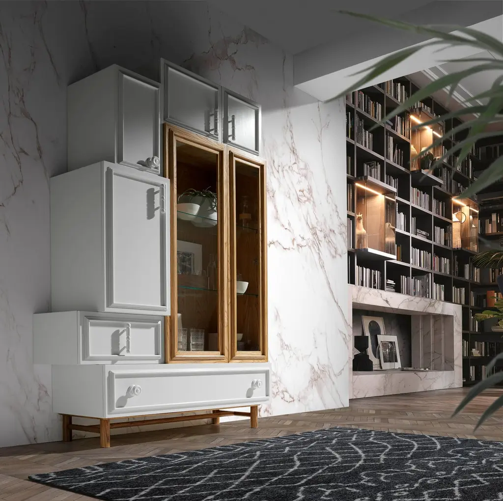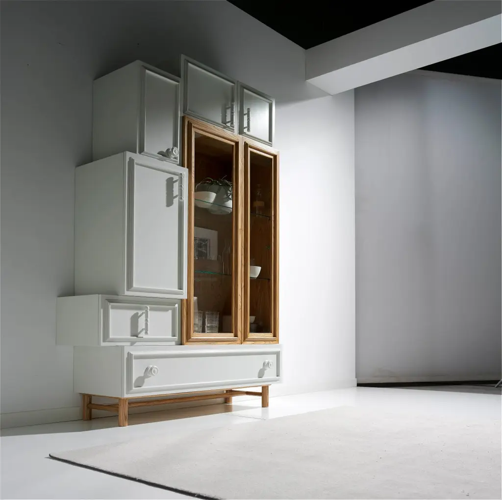 Oh Lola Cabinet by Lola GlamourDimensions: D 45 x W 130 x H 200 cmMaterials: Wood.Modular boxes assembled together with flat finishes, without patina or aged. We play with the volume of the pieces to design a modern, open, demanding, and personal piece of furniture. Six doors and two drawers on a base with cylindrical legs. It gives off optimism and clarity, opening the space and eclipsing it at the same time.Customizable in size and finishWe are Félix and Désirée Ramos, brothers and product designers of our brand, Lola Glamour.We are interested in the singular, the different, the beauty, and the balance of color and materials. We have the ability to observe and the ability to translate any beautiful object into a piece of furniture.We are proud of having created our own style, a way of understanding design, which allows us to tell stories and connect with the souls of people and spaces.Lola Glamor is a Spanish company from Soria, which has designed and manufactured unique furniture in noble woods, with artisanal construction and extraordinary finishes since 1995. Artistic furniture that is customized in size and finish according to the client's needs.We offer original furnishing solutions for professionals and individuals from any country in the world, mixing materials, volumes, motifs, and colors that achieve their own style.We are, above all, the sum of a team of people who contribute their dedication and commitment to a unique level of demand, detail, and quality.