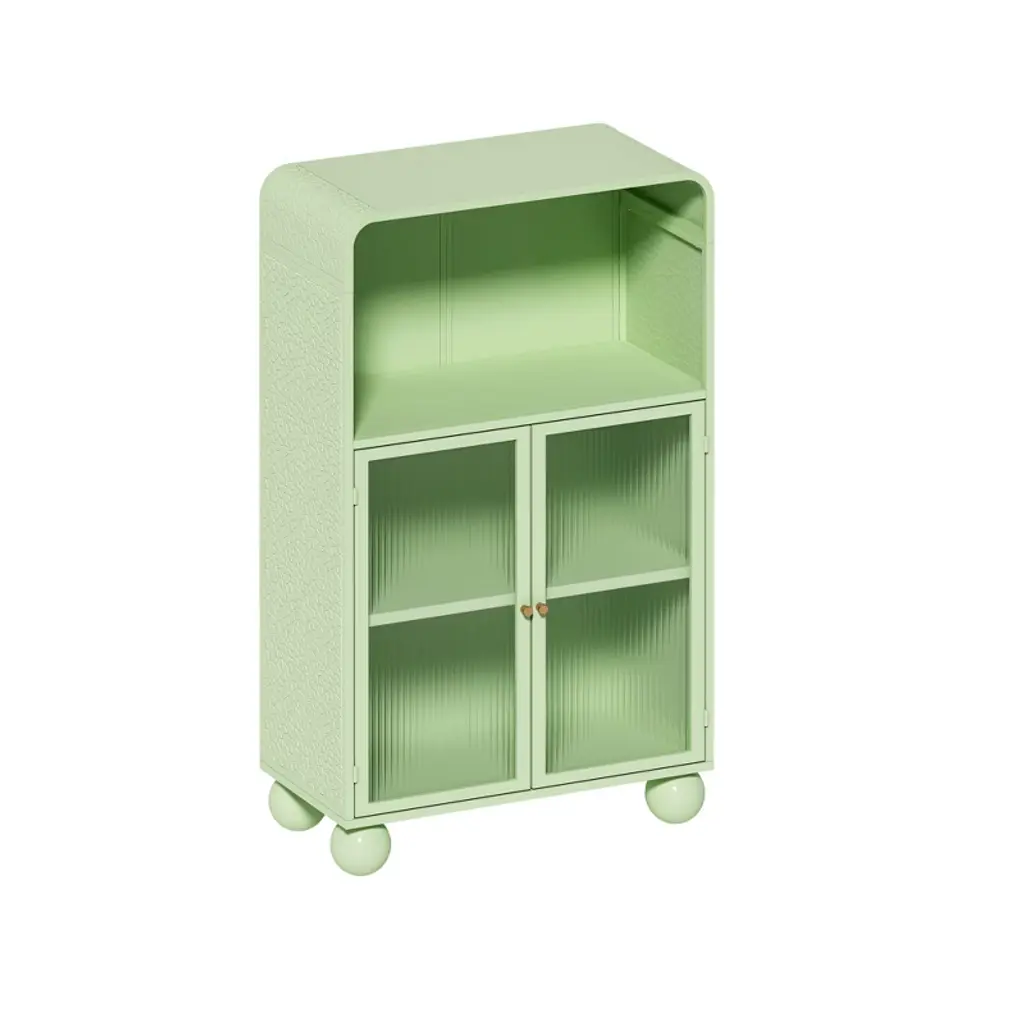 Okak 45.2" Bathroom Storage Cabinet With Tempered Glass Door,freestanding Storage Cabinet With 2 Doors & 1 Open Shelf For Kitchen & Bathroom, Green