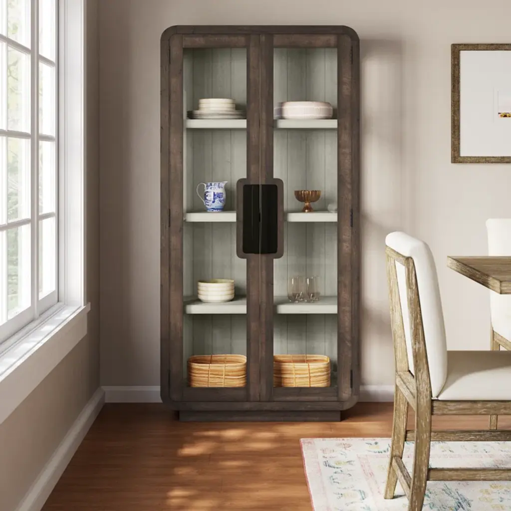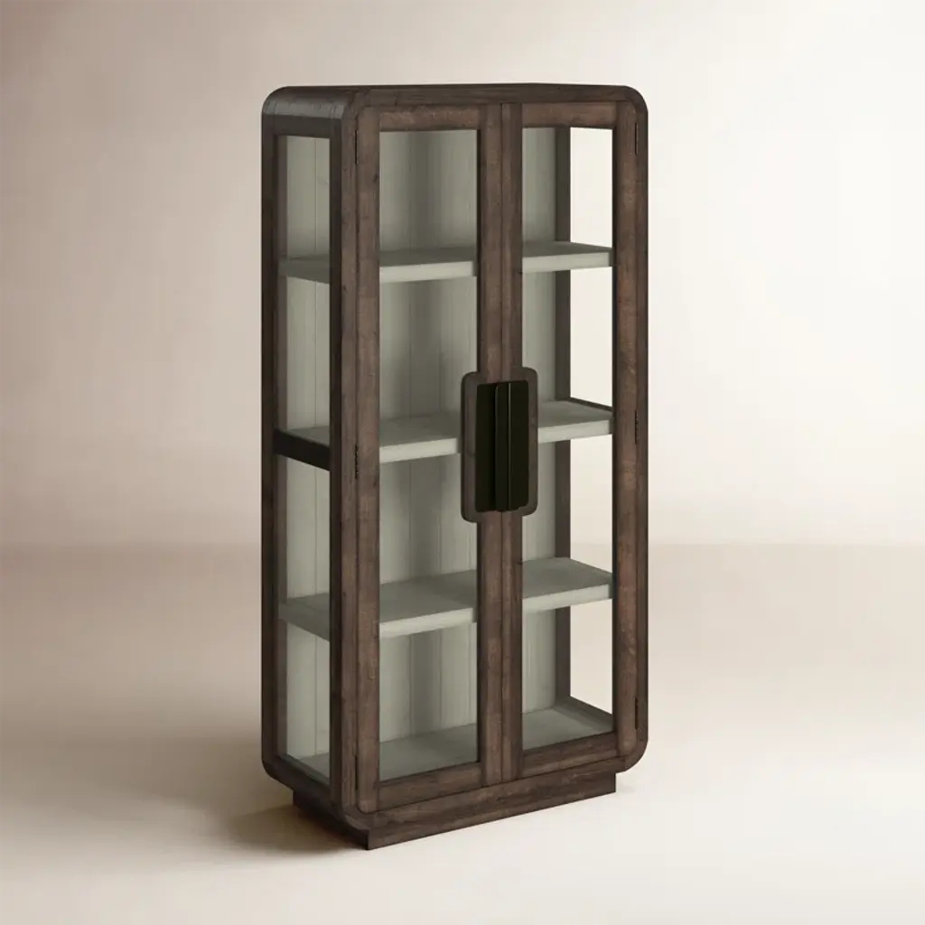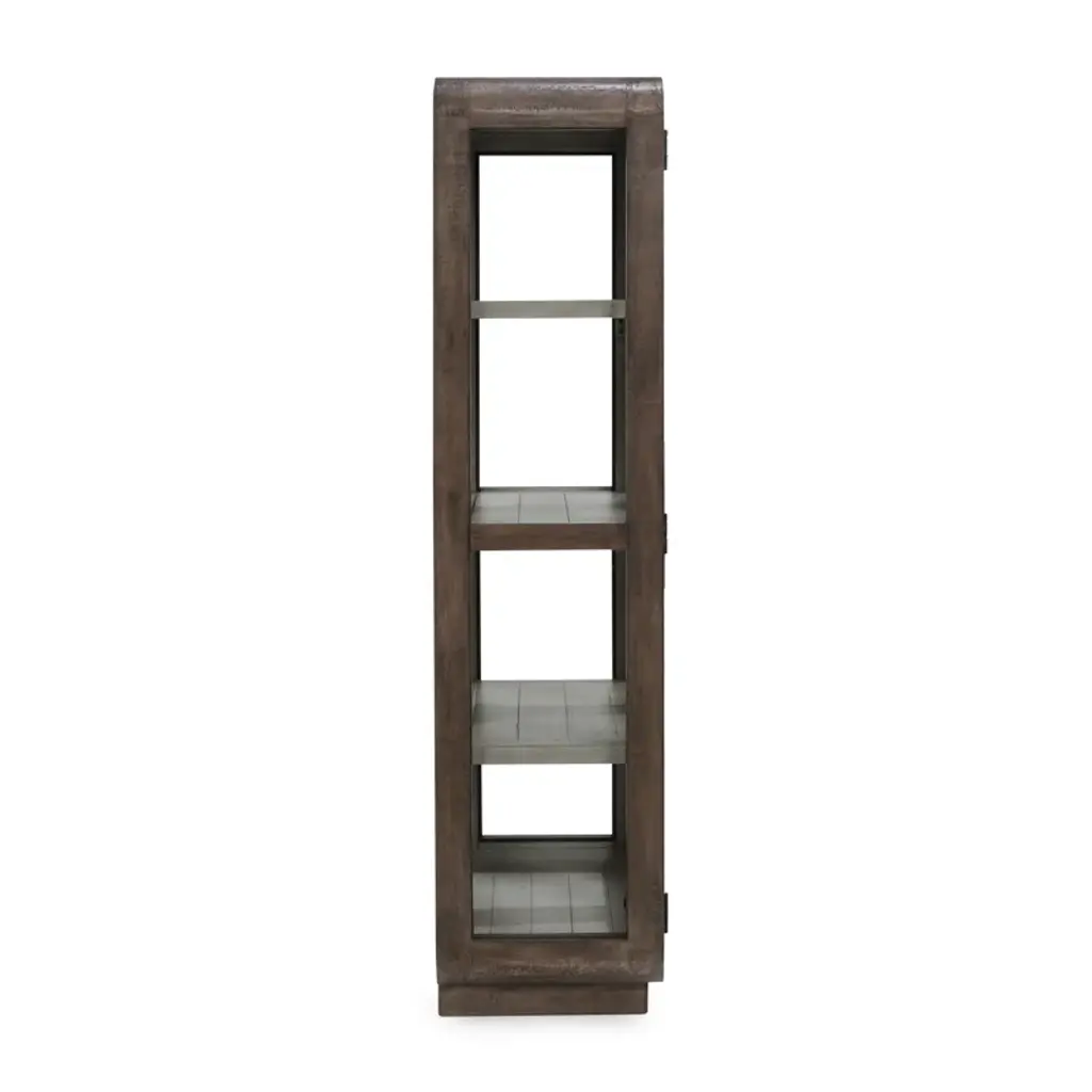 Show off your favorite treasures in this rustic-inspired curio cabinet. Made from solid pine wood, it features two hinged glass doors that open to reveal four adjustable wood shelves, providing ample space for your cherished collectibles. The tempered glass ensures added safety, while the natural wood grain lends a warm, inviting touch to any room. Although it doesn't come with built-in lighting, you can always add your own to make your display shine. Just remember, this cabinet is designed for home use, so it's perfect for showcasing your personal style.