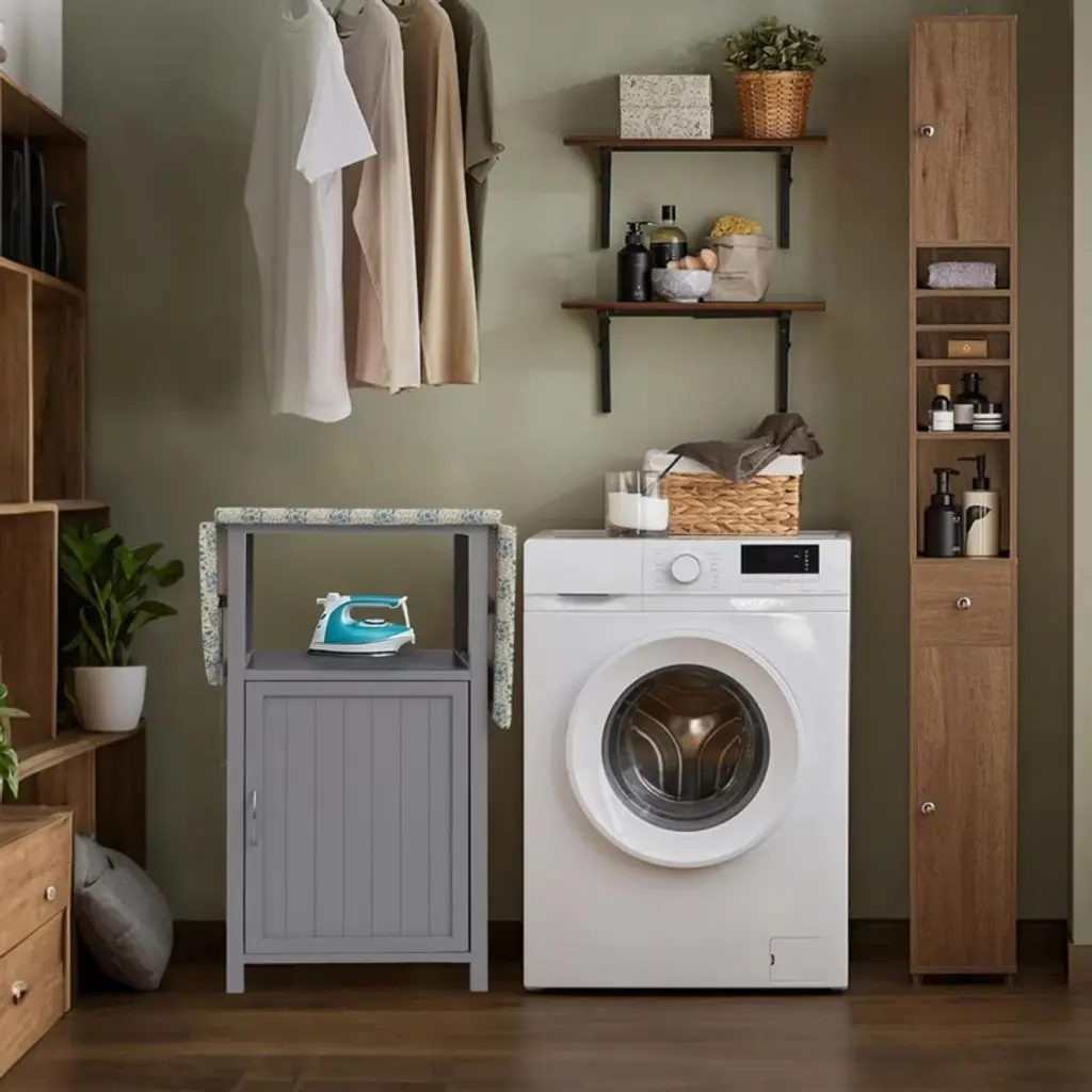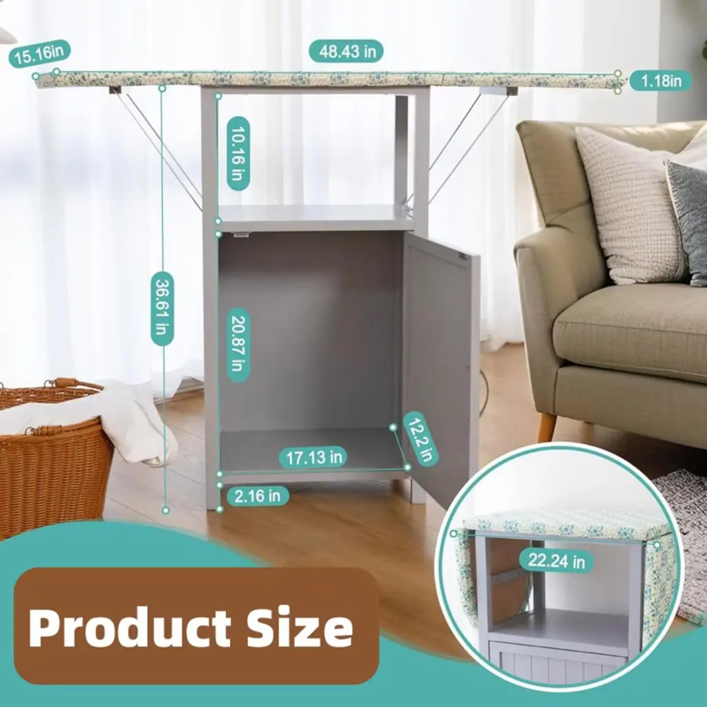 This solid wood folding ironing board with storage cabinet is the perfect blend of functionality and style for small spaces. Featuring a heat-resistant sponge surface for safe and efficient ironing, it folds down neatly when not in use, saving valuable room space. The built-in cabinet offers extra storage for laundry essentials, keeping your area organized and clutter-free. Its gray finish adds a modern touch, making it ideal for laundry rooms, apartments, or compact homes.