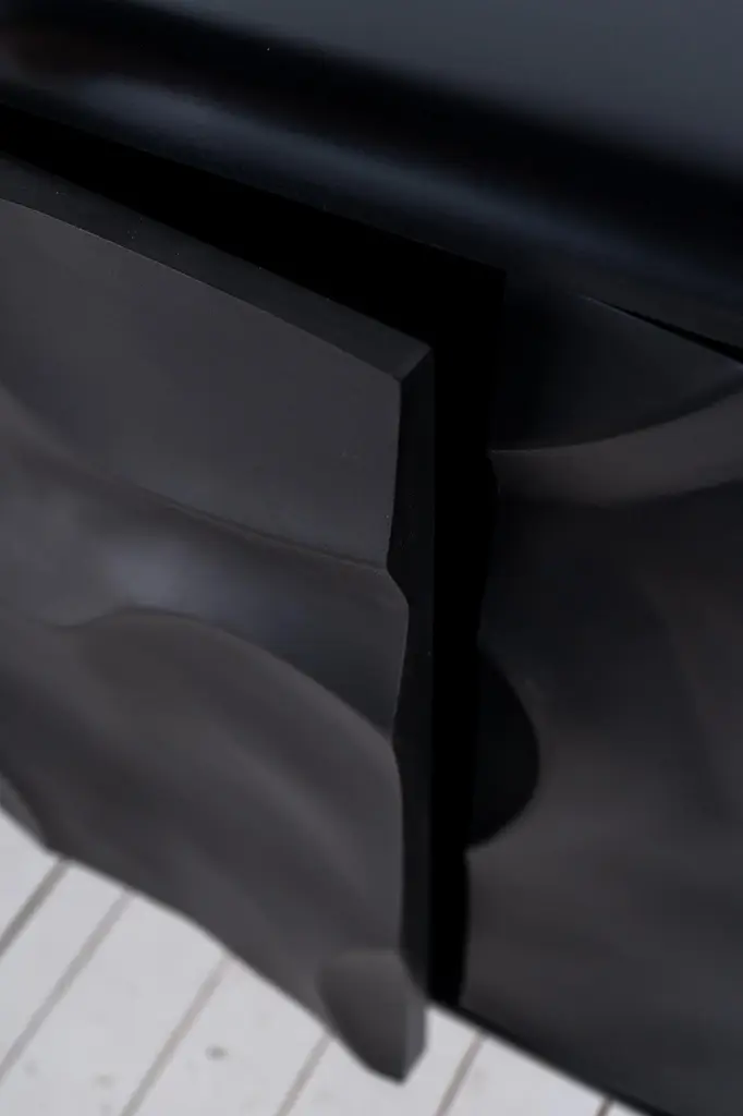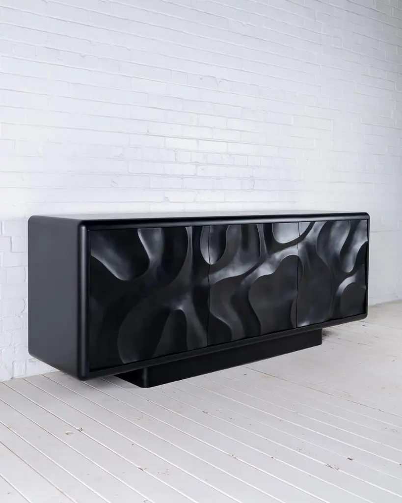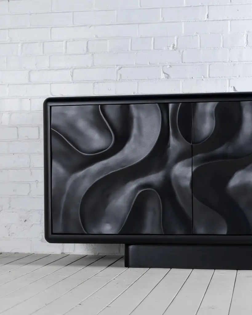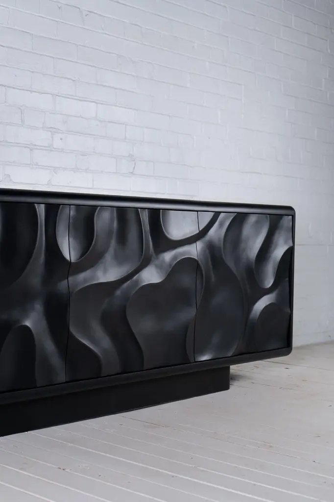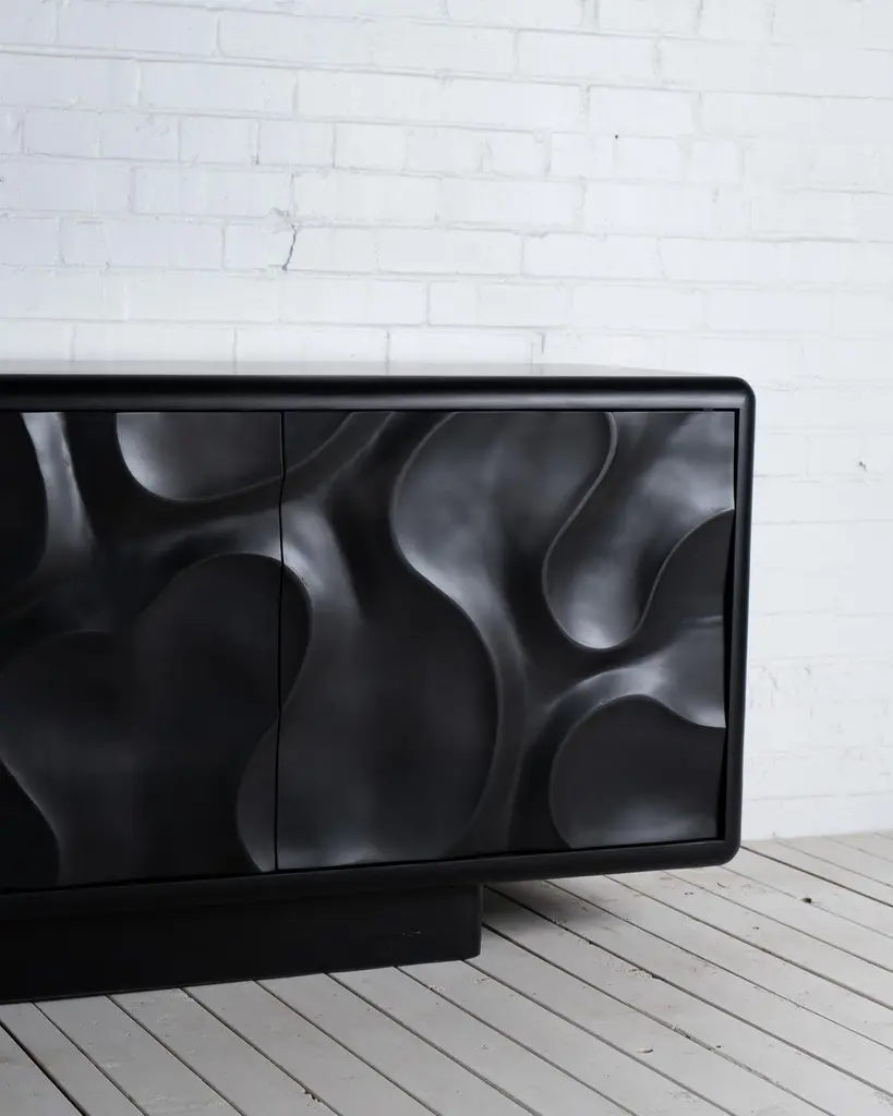 The Orthos Cabinet is piece we designed to explore the balance between clean lines and organic forms.Made from solid, sustainably-sourced hardwood, the front of each cabinet is intentionally planned, drawn, and hand carved in our studio. In the spirit of Wabi Sabi, the contoured front is intentionally left with slight variation and texture from the carving process.As part of our Black Label Series, the Orthos is meant to be a stand-alone piece of functional art with no two cabinets ever being the same. Each commissioned cabinet is serialized, dated, and signed by the craftsman who made the piece, ensuring authenticity.Although shown here in Ebonized Maple, the Orthos is available in all of our signature finishes and finish combinations.Our standard dimensions and finishes are listed. Custom sizes/finishes available upon request.
