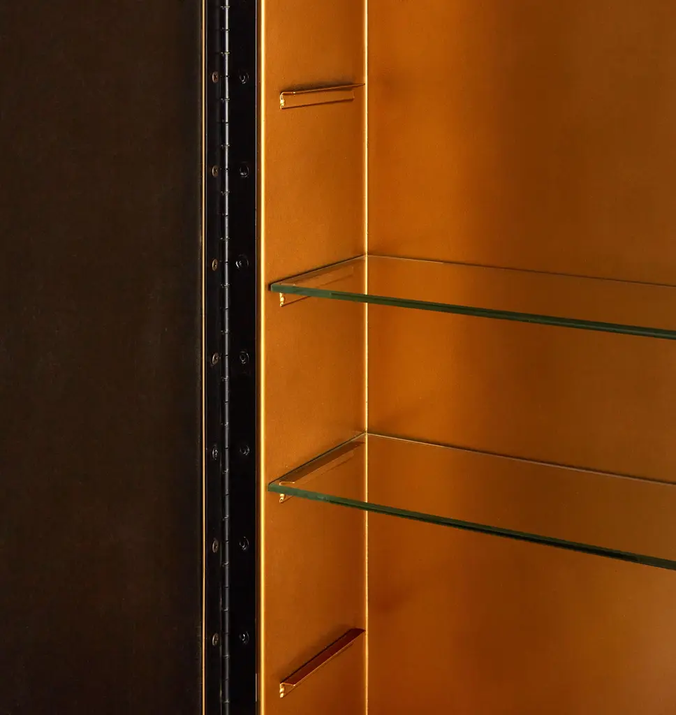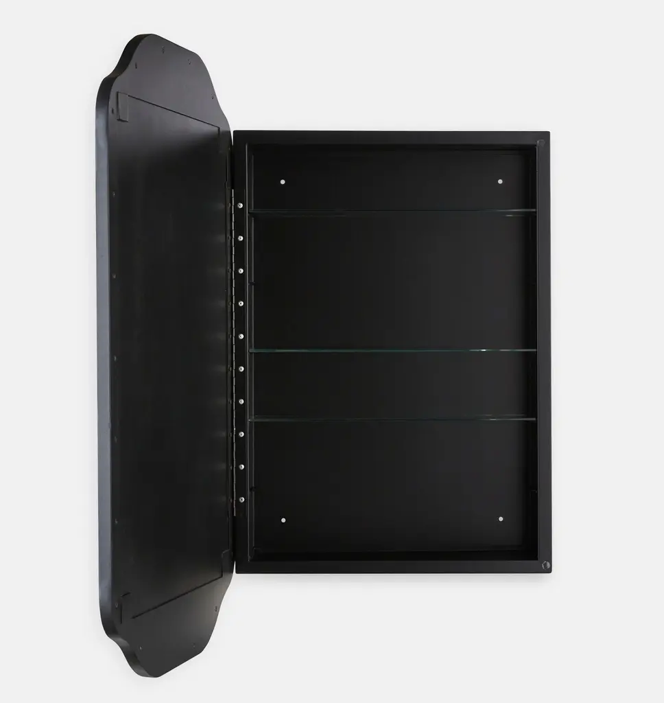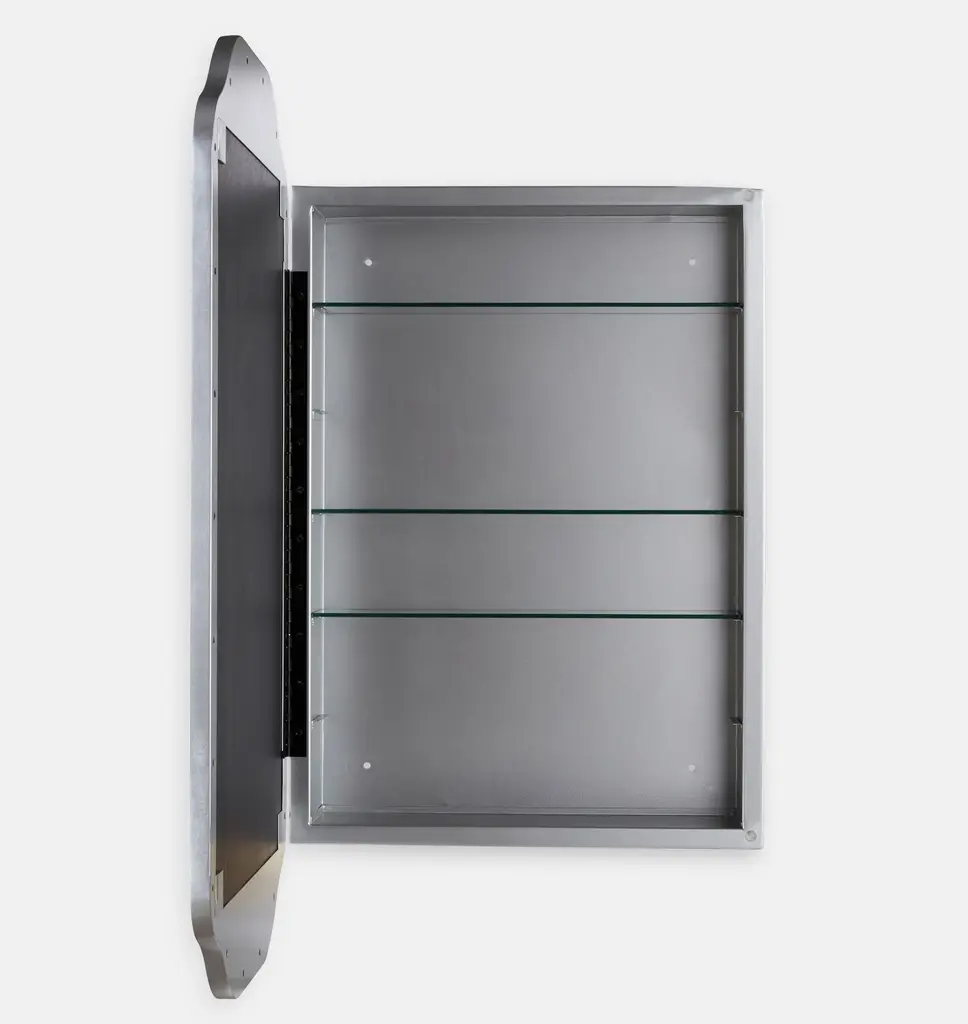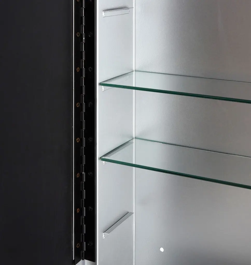 Sleek framing with subtly grooved corners creates a refined storage solution that seamlessly integrates above any vanity.