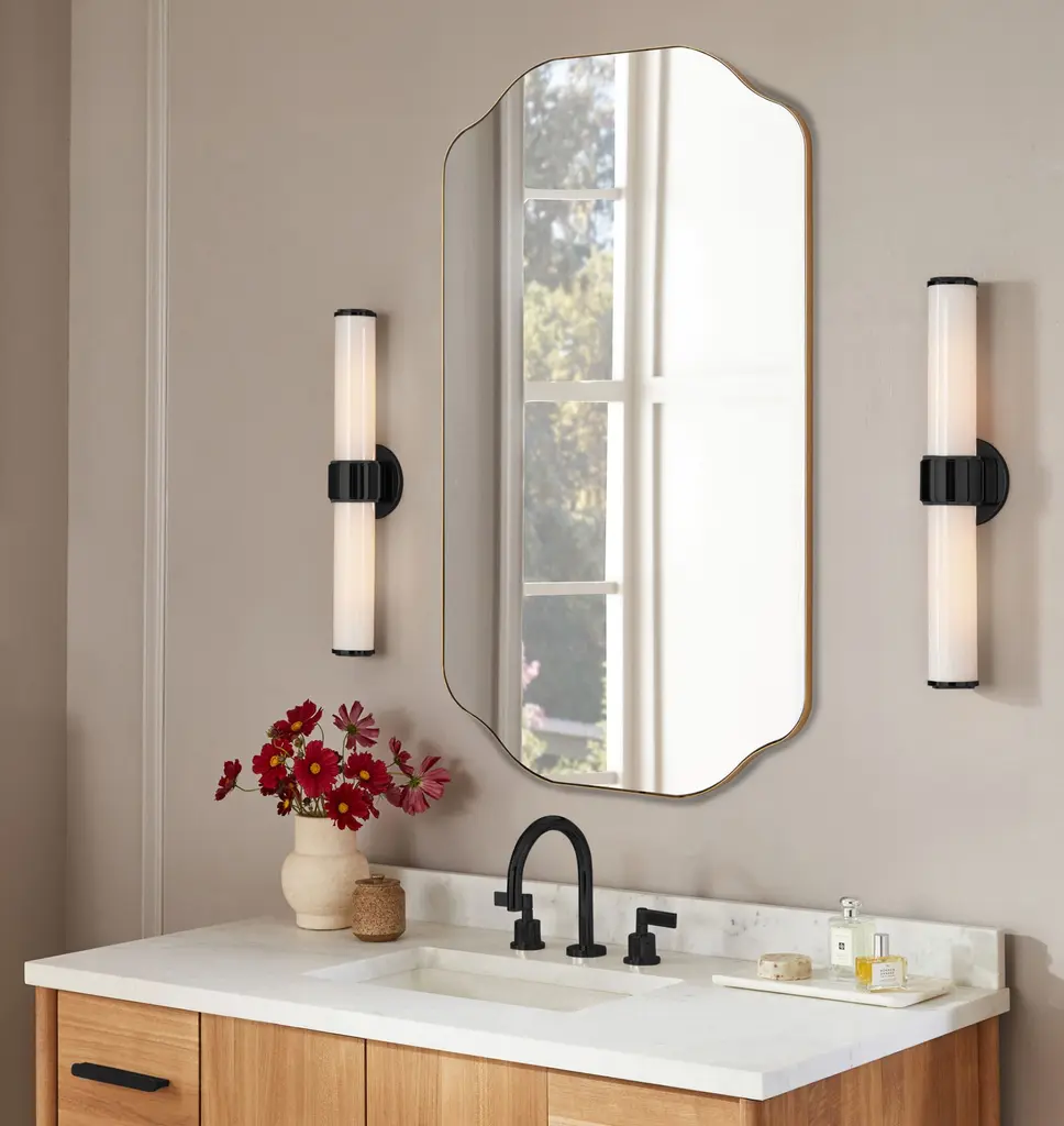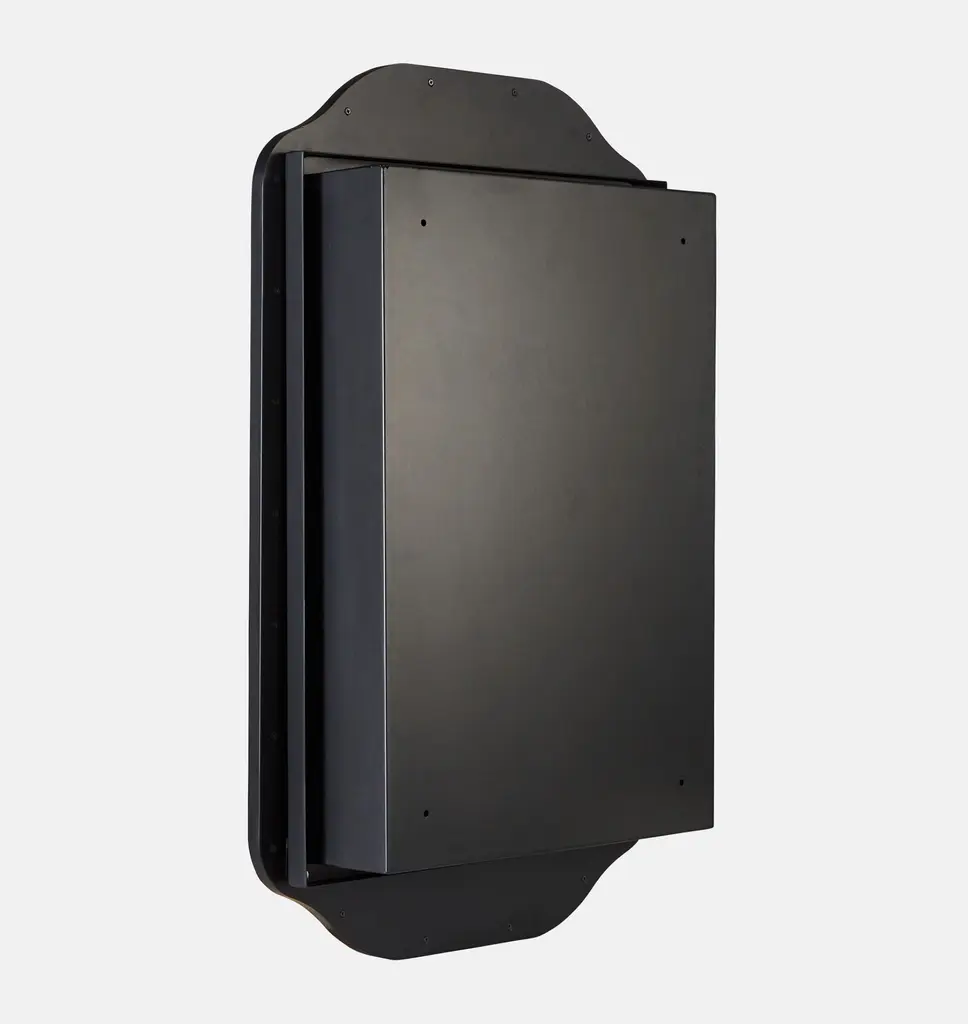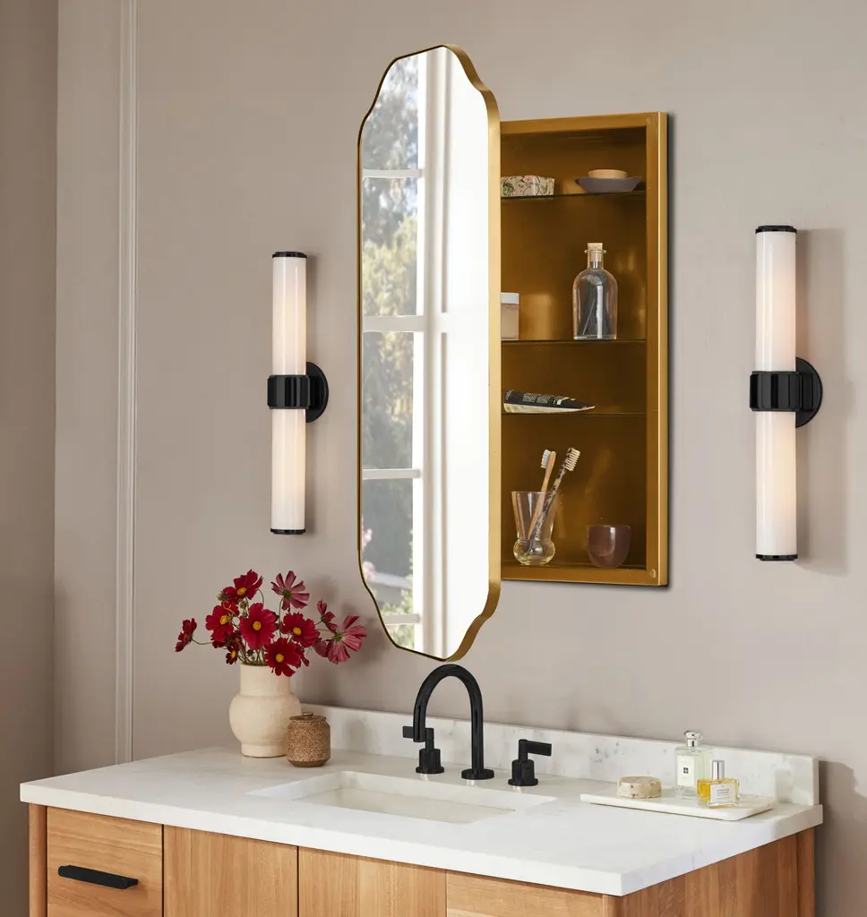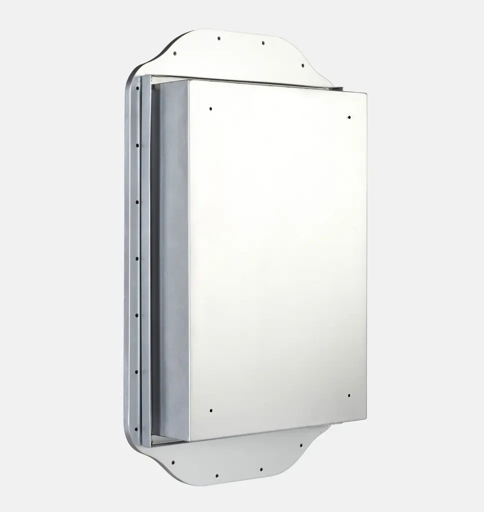 Sleek framing with subtly grooved corners creates a refined storage solution that seamlessly integrates above any vanity.