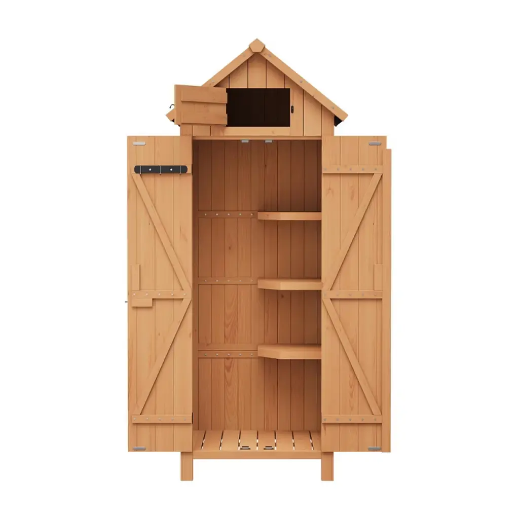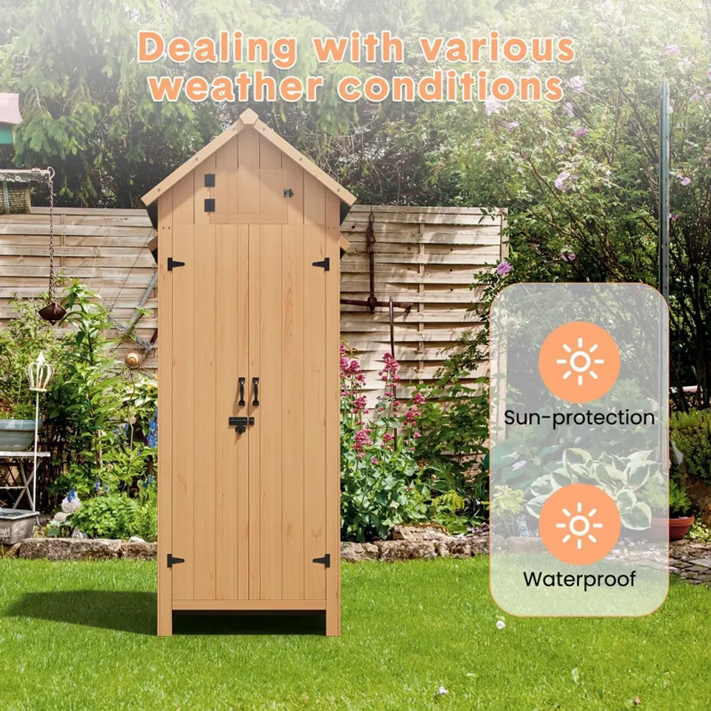 Outdoor Wooden Storage Shed, 69''h Vertical Tool Storage House With Shelves, Large Garden Tools Shed With Lockable Door For Backyard Garden Patio
