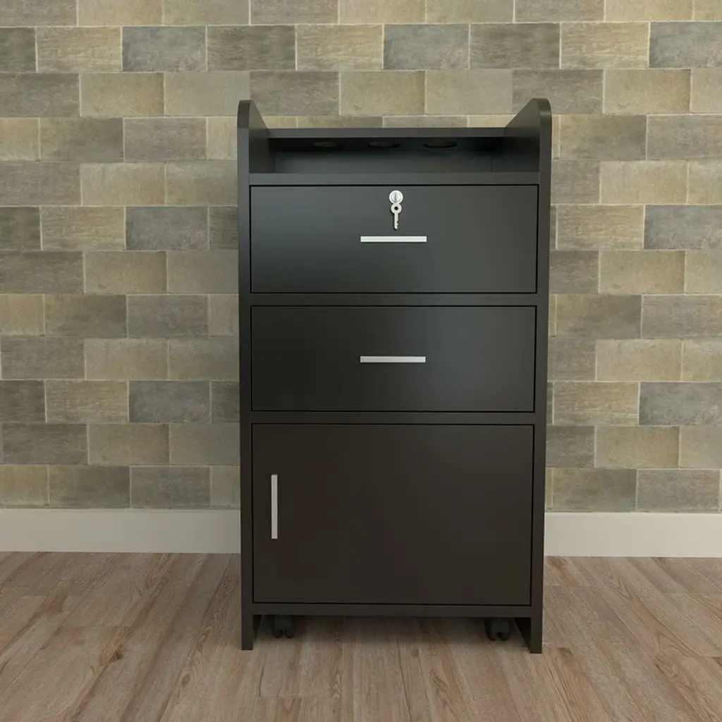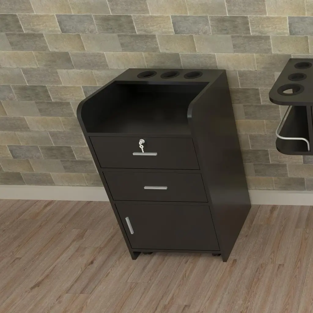 P2 Particle Board 2 Drawers 1 Door 3 Air Ducts Salon Cabinet Black - N/a - Black