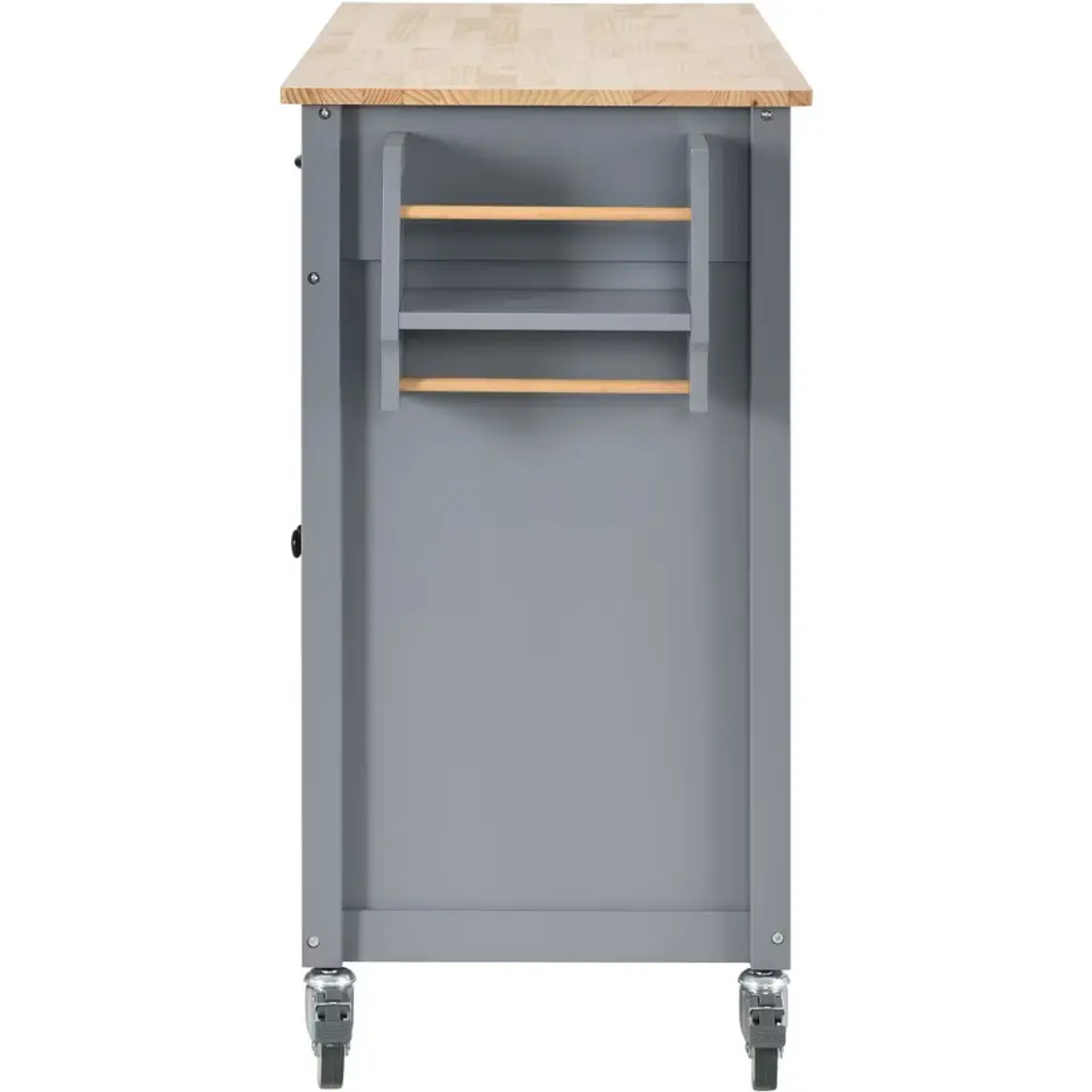 Paged Kitchen Island With Solid Wood Top, Modern Kitchen Island Cart With 4 Door Cabinet, 2 Drawers And 2 Locking Wheels For Kitchen, Blue