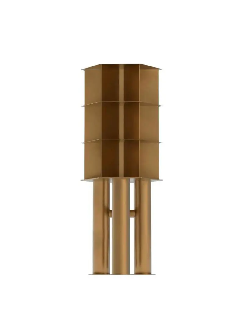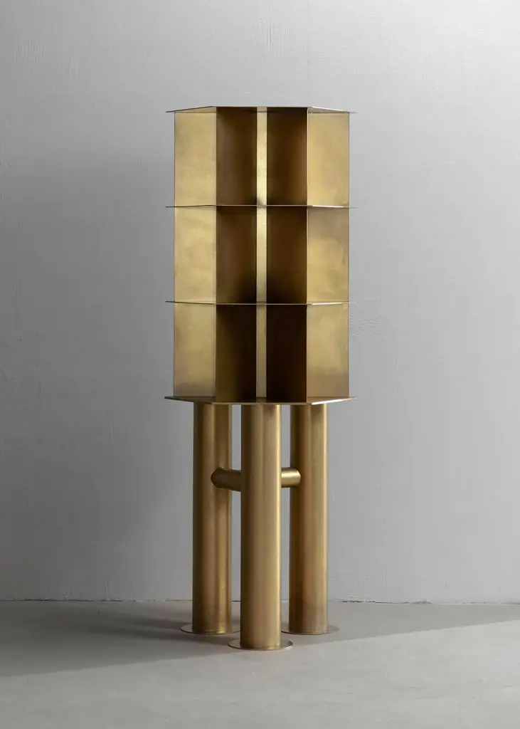 Pagoda 01 display cabinets by Sing ChanEdition Of 15 + 2 APDimensions: D 70 x H 190 cmMaterials: Stainless steel, electroplating.Sing Chan ( Chinese: 陈星宇/Xingyu Chen) , the founder of SINGCHAN DESIGN, was born in 1990, and graduated from the Department of Industrial Design in Guangzhou University in 2013. He served as the Design Director for Bentu Design in 2016.Founded his own design studio in 2020, Sing specializes in discovering new revelations from different civilizations and eras, reconstructing them through design methods, and shaping new objects that link the past and the present.Panyu, Guangzhou, China, where Sing grew up, is a small town with a rich history along the Pearl River. In the early years, thanks to the developed waterway transportation, the port of the town has a very close relationship with Hong Kong, the imported cultures, utensils, and values meet and fuse here.It was not until he had been in the design industry for more than ten years that he realized that his understanding of native culture was shallow. He is confused about this, and experience tells him that the truly valuable objects are not groundless and pieced together, but based on historical inspection and adaptation of the times. Sing hopes that his design can be like a story that is worth telling in a lyric way, affecting the present across time.