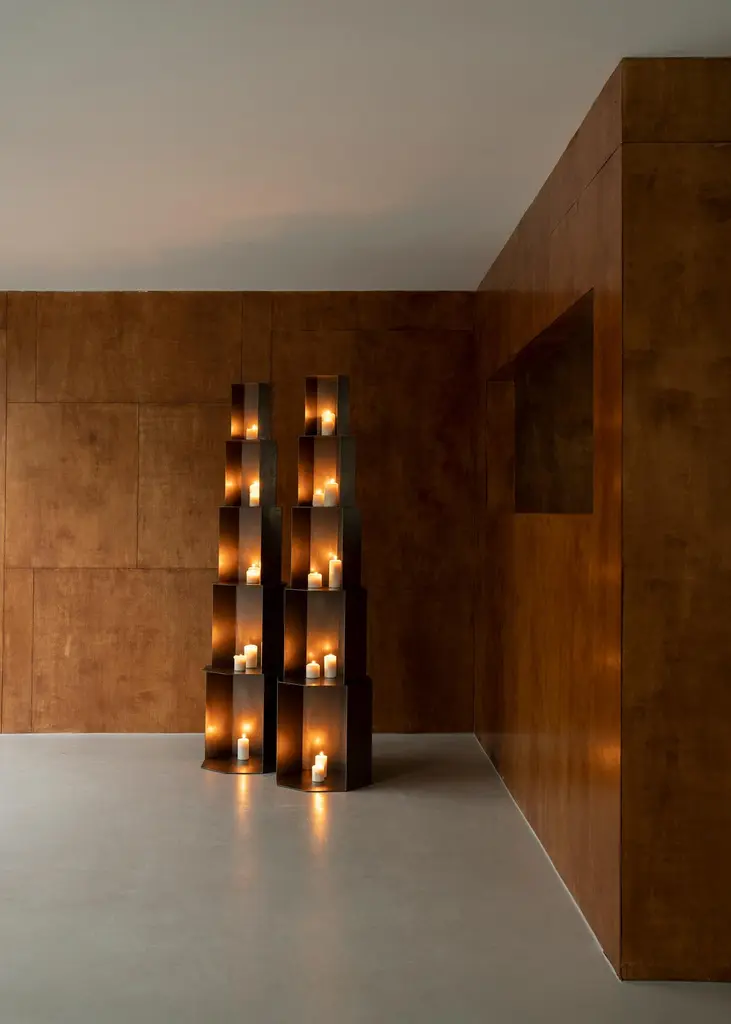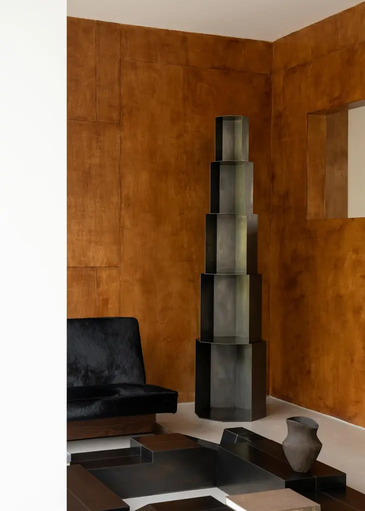 Pagoda 02 display cabinets by Sing Chan Dimensions: D 49.5 x H 202 cmMaterials: Stainless steel, electroplating.Sing Chan ( Chinese: 陈星宇/Xingyu Chen), the founder of SINGCHAN DESIGN, was born in 1990, and graduated from the Department of Industrial Design in Guangzhou University in 2013. He served as the Design Director for Bentu Design in 2016.Founded his own design studio in 2020, Sing specializes in discovering new revelations from different civilizations and eras, reconstructing them through design methods, and shaping new objects that link the past and the present.Panyu, Guangzhou, China, where Sing grew up, is a small town with a rich history along the Pearl River. In the early years, thanks to the developed waterway transportation, the port of the town has a very close relationship with Hong Kong, the imported cultures, utensils, and values meet and fuse here.It was not until he had been in the design industry for more than ten years that he realized that his understanding of native culture was shallow. He is confused about this, and experience tells him that the truly valuable objects are not groundless and pieced together, but based on historical inspection and adaptation of the times. Sing hopes that his design can be like a story that is worth telling in a lyric way, affecting the present across time.