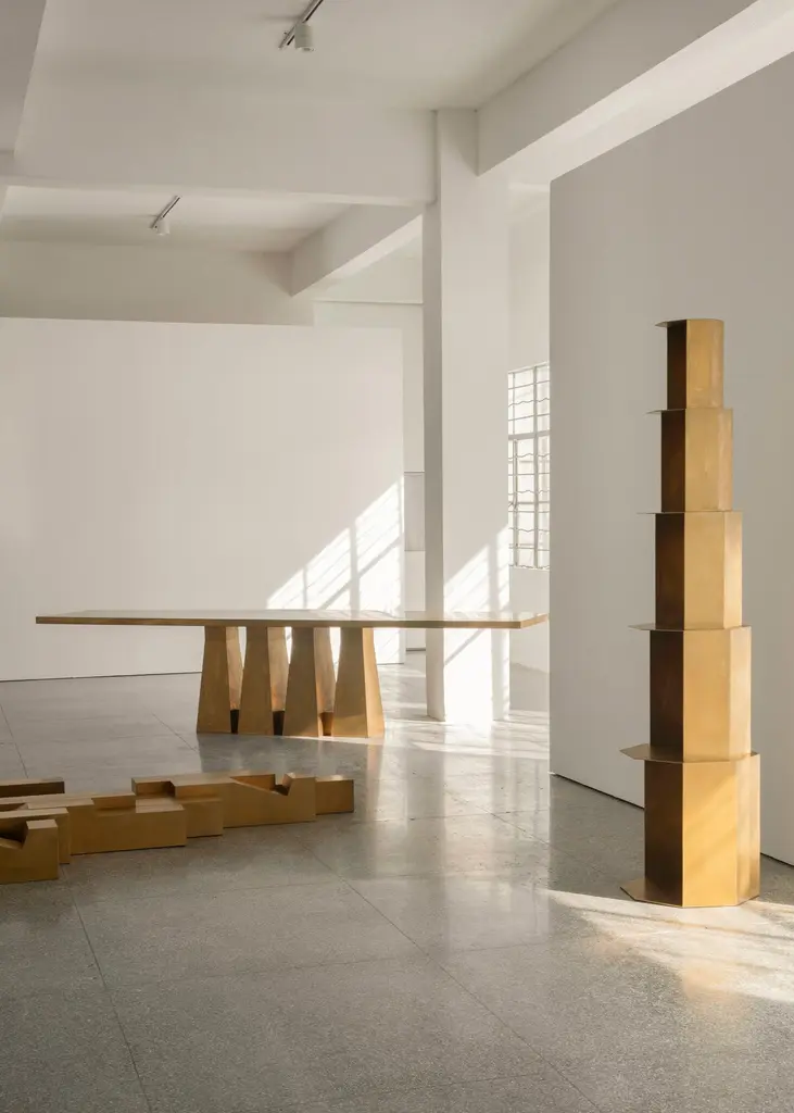 Pagoda 02 display cabinets by Sing Chan Dimensions: D 49.5 x H 202 cmMaterials: Stainless steel, electroplating.Sing Chan ( Chinese: ???/Xingyu Chen) , the founder of SINGCHAN DESIGN, was born in 1990, and graduated from the Department of Industrial Design in Guangzhou University in 2013. He served as the Design Director for Bentu Design in 2016.Founded his own design studio in 2020, Sing specializes in discovering new revelations from different civilizations and eras, reconstructing them through design methods, and shaping new objects that link the past and the present.Panyu, Guangzhou, China, where Sing grew up, is a small town with a rich history along the Pearl River. In the early years, thanks to the developed waterway transportation, the port of the town has a very close relationship with Hong Kong, the imported cultures, utensils, and values meet and fuse here.It was not until he had been in the design industry for more than ten years that he realized that his understanding of native culture was shallow. He is confused about this, and experience tells him that the truly valuable objects are not groundless and pieced together, but based on historical inspection and adaptation of the times. Sing hopes that his design can be like a story that is worth telling in a lyric way, affecting the present across time.