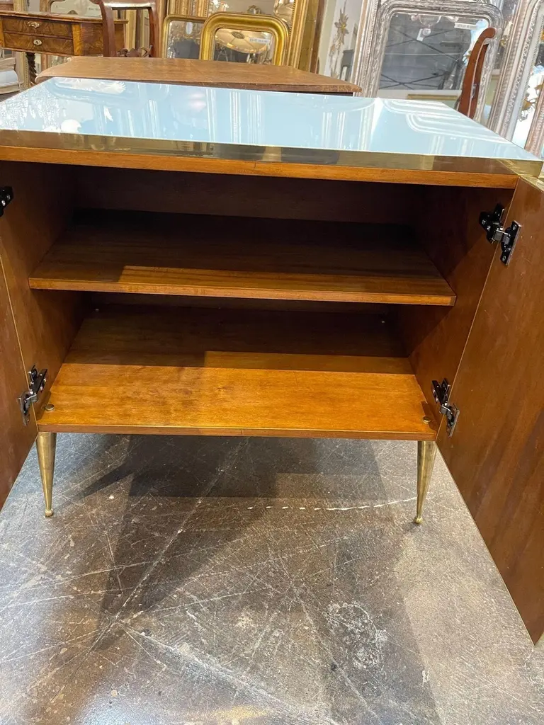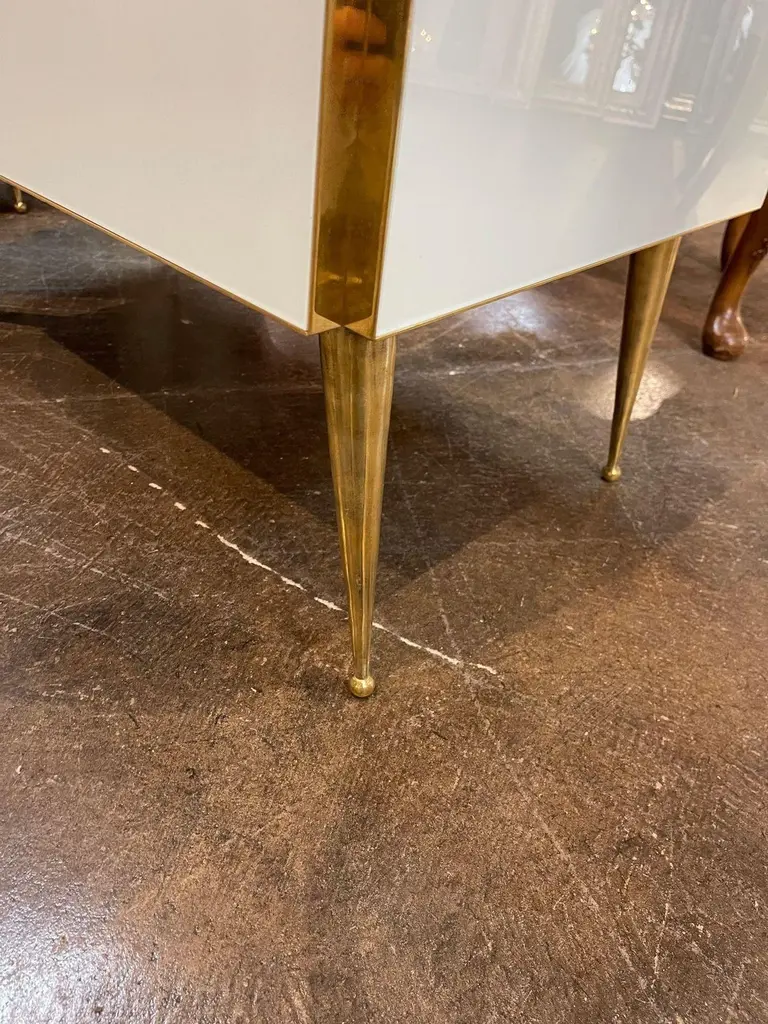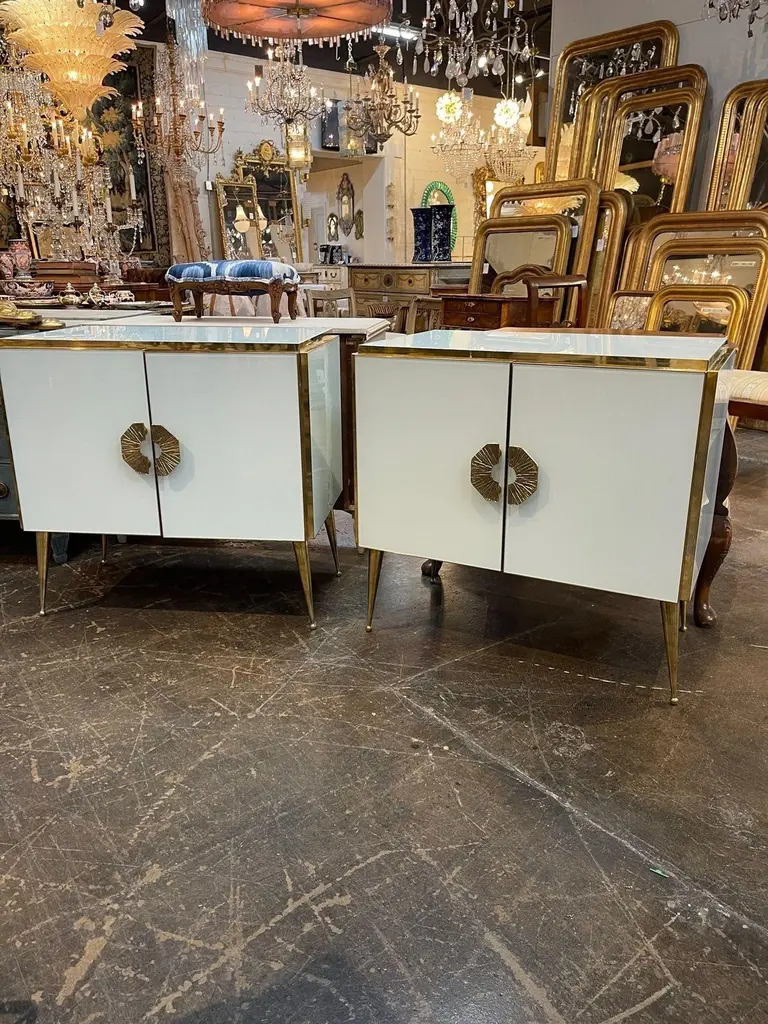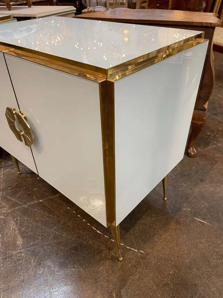 Amazing pair modern Murano glass and brass side cabinets. Featuring beautiful glistening glass polished brass legs and details. Beautiful for a contemporary home. Stunning!!