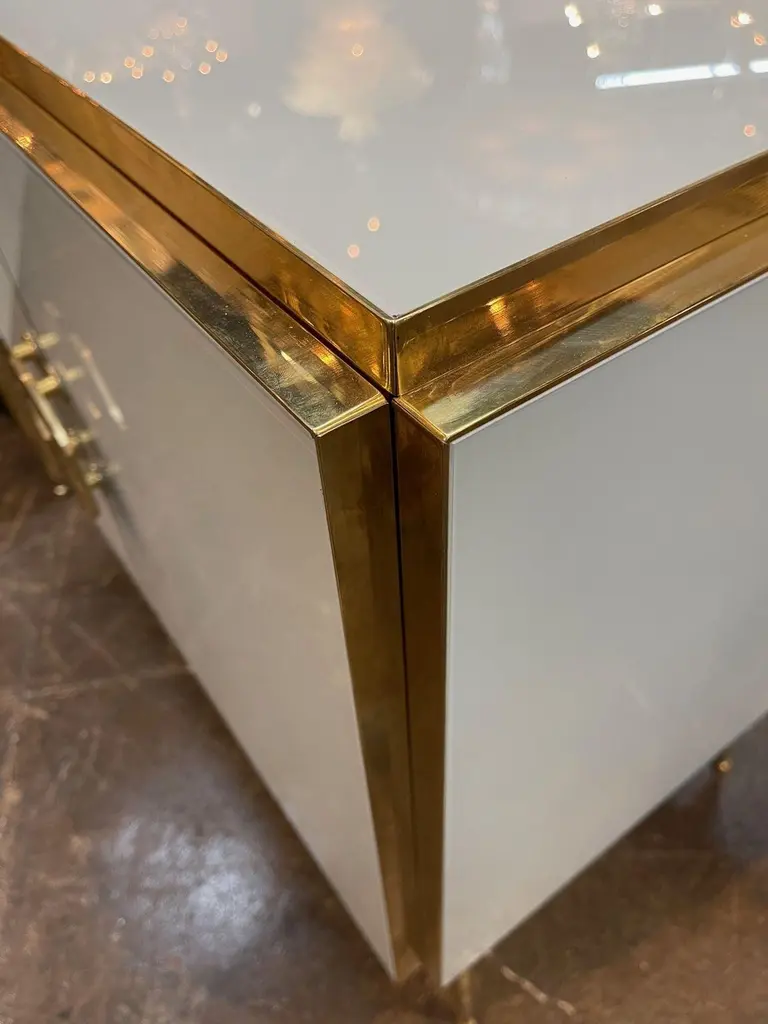 Pair Of Modern Murano Glass And Brass Side Cabinets