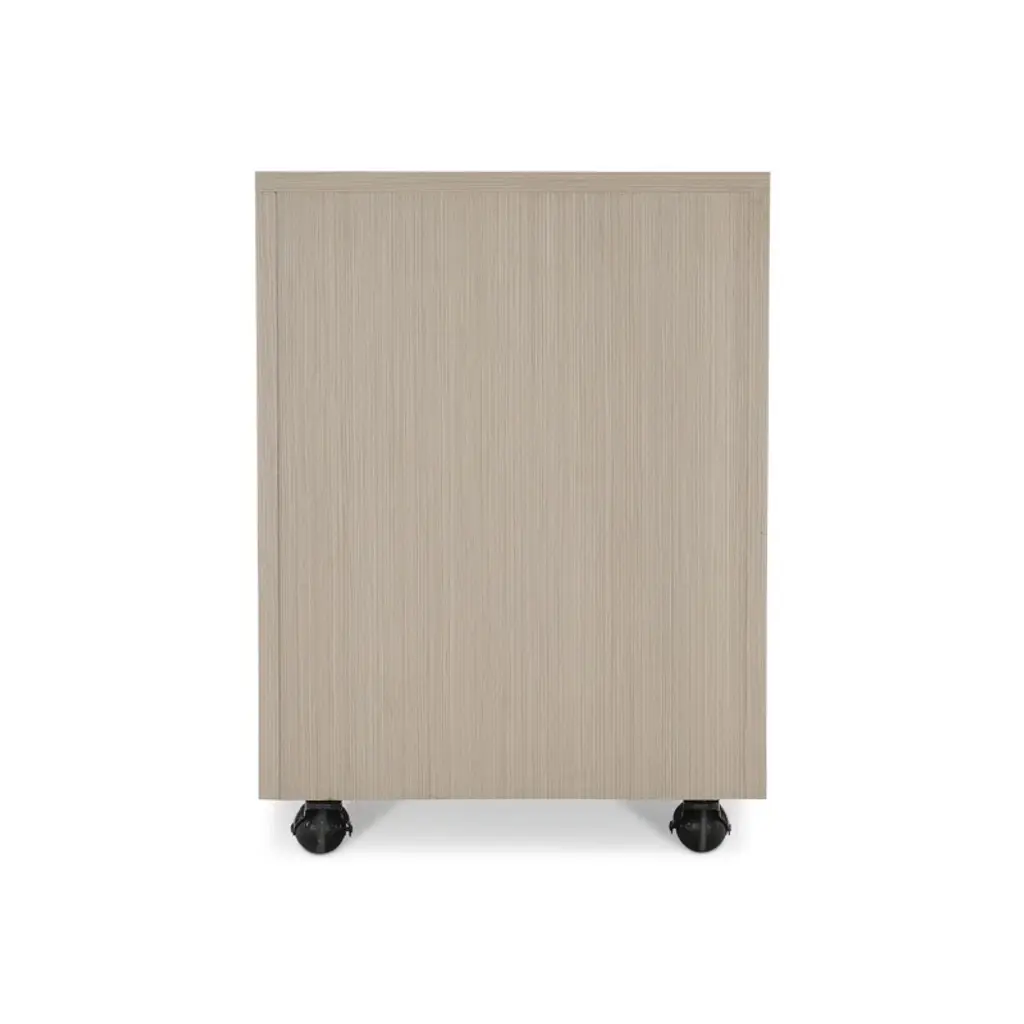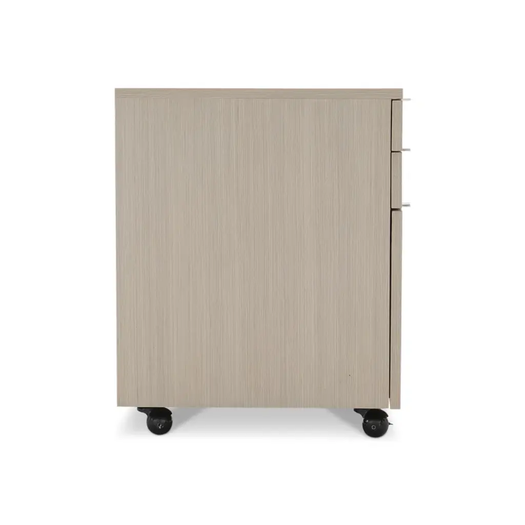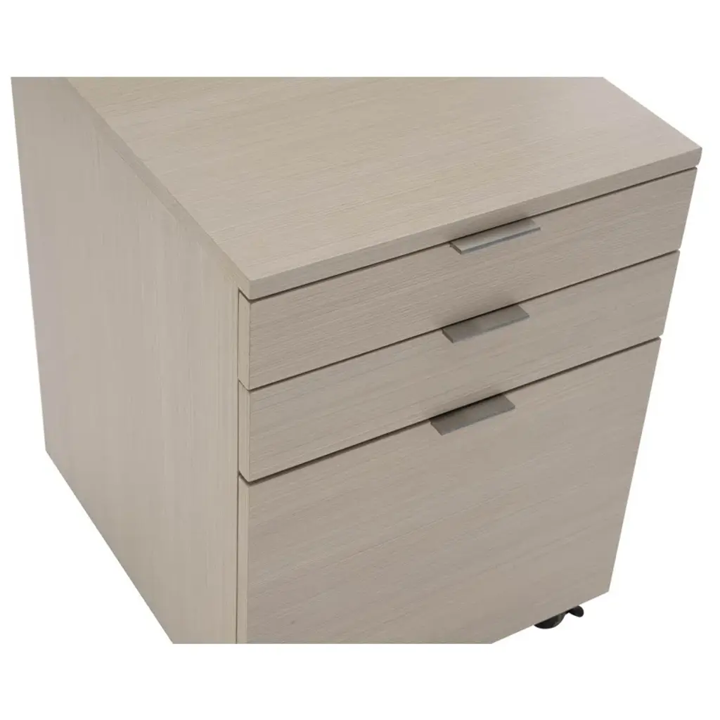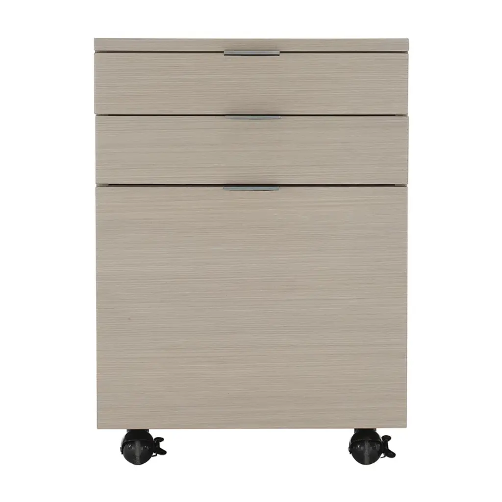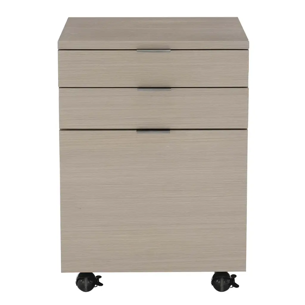 Bernhardt Workspace blends minimalist profiles and sophisticated finishes with a chic, modern feel. The Axiom file cabinet provides ample storage behind a no-fuss facade, making it highly functional as well as stylish. With three spacious drawers, it helps keep a workspace organized and uncluttered. Sleek metal hardware and a linear wood grain in Linear Grey finish create a look of subtle sophistication.