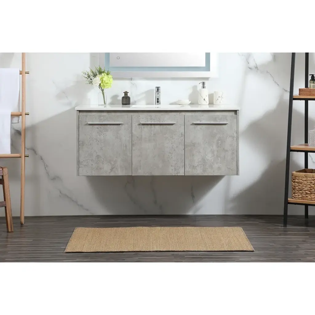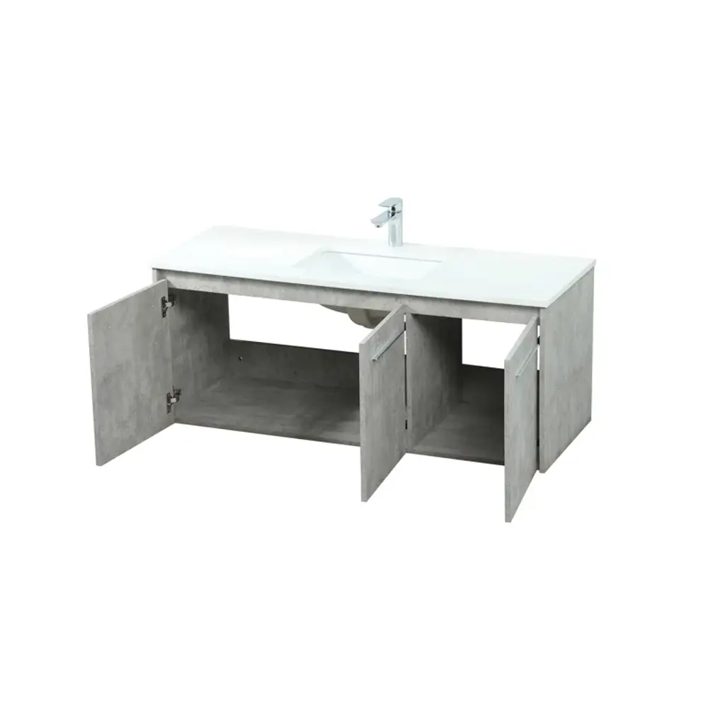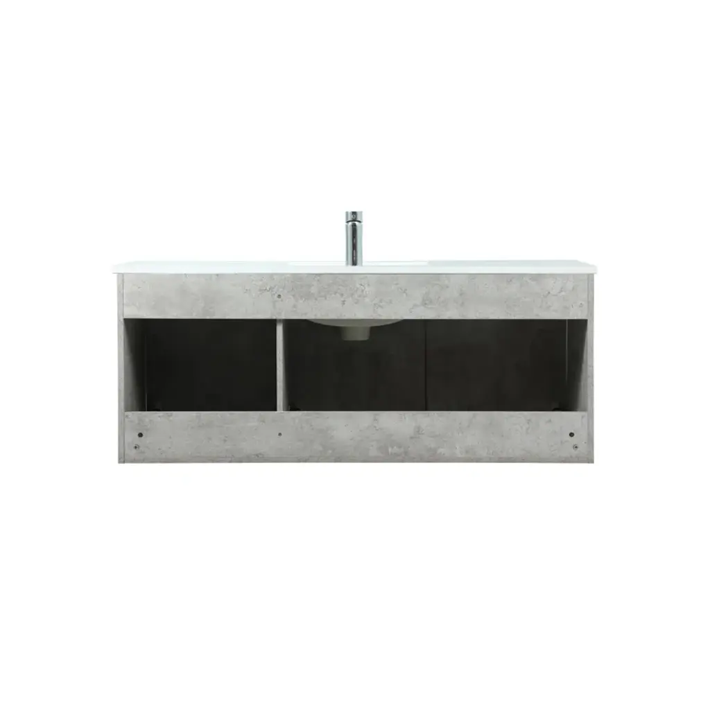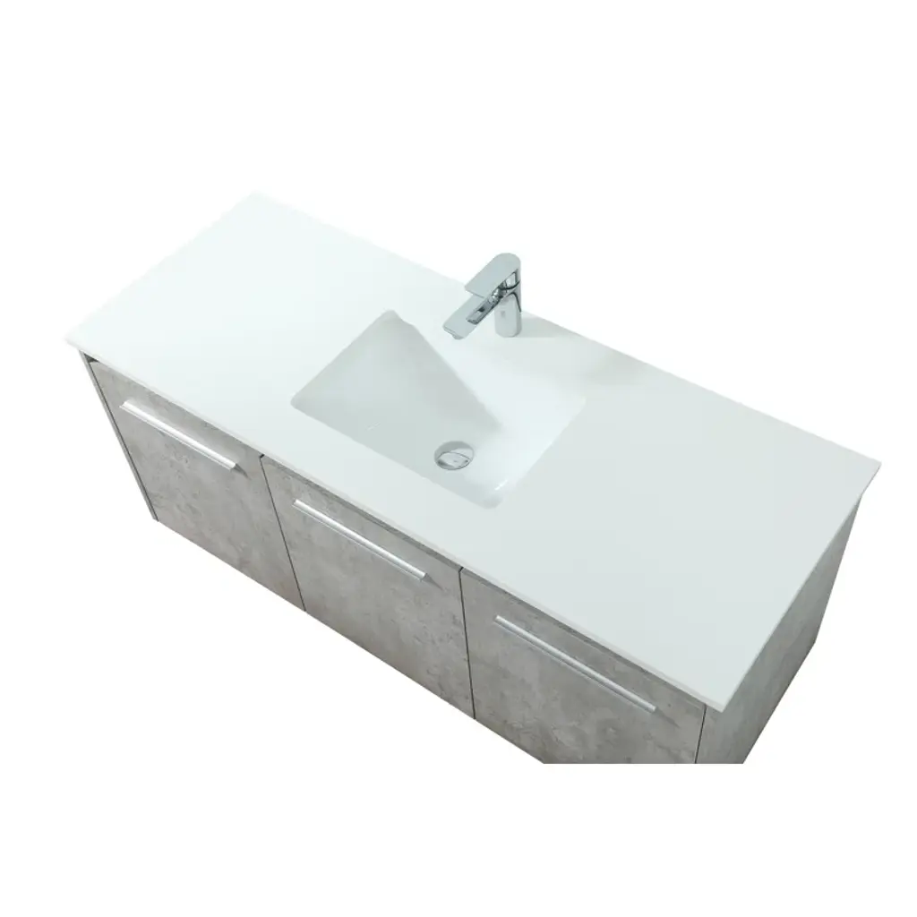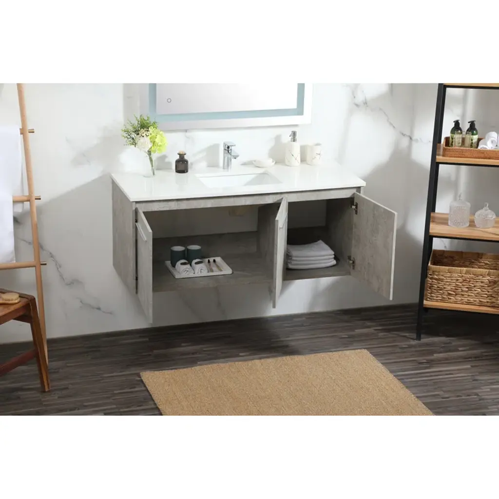 Save space and make your bathroom appear bigger with this floating vanity that comes in several finishes. Its minimal design will leave you in awe, while its clean lines will leave your room feeling fresh and uncluttered. The Single cabinet opens with soft closing doors that allow for storage to place extra towels or various other essentials. It's low maintenance and durable engineered marble top will surely last through many washes.