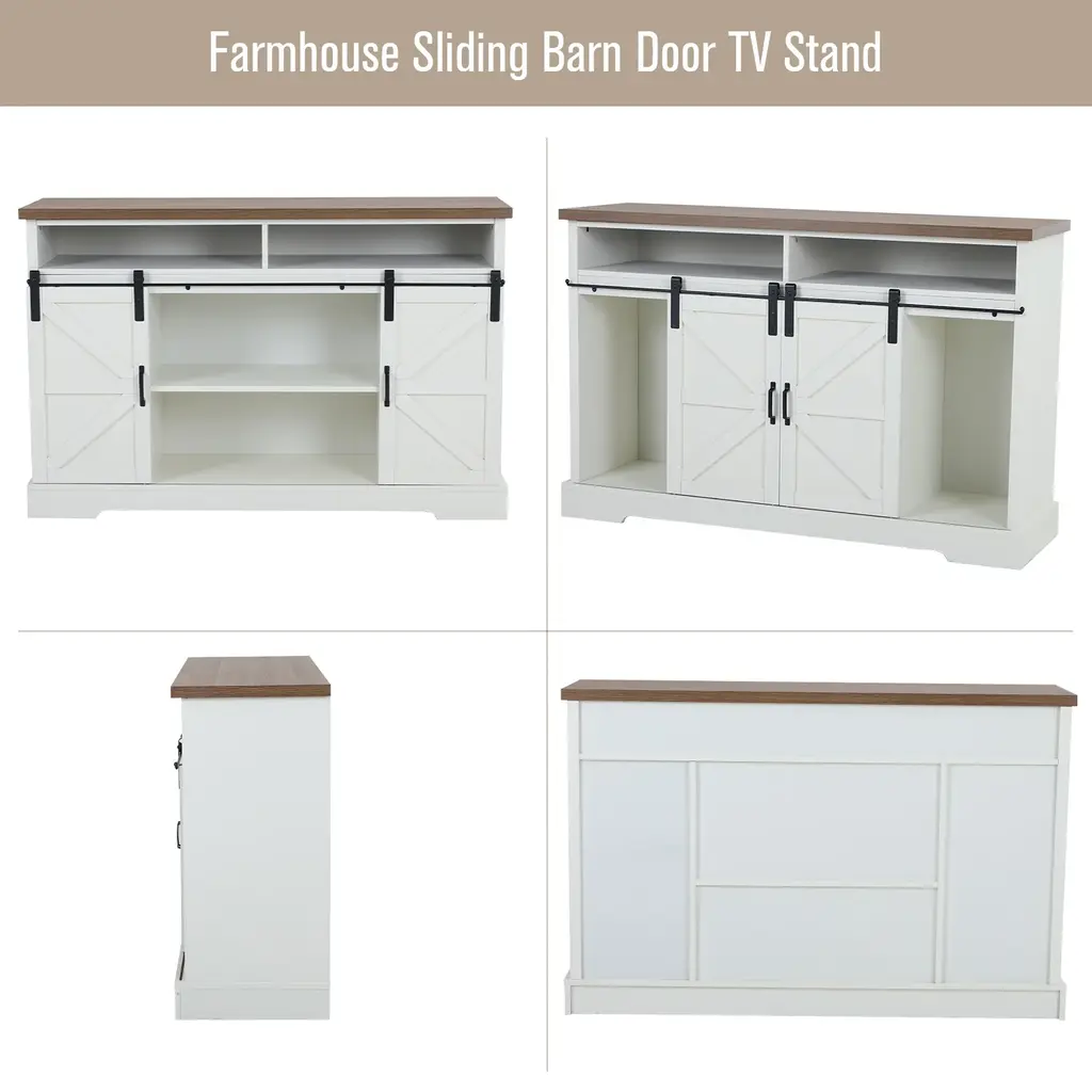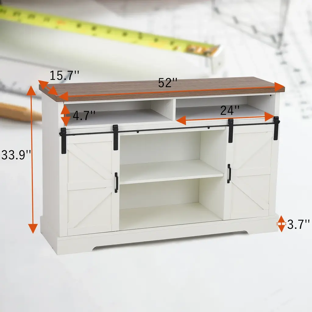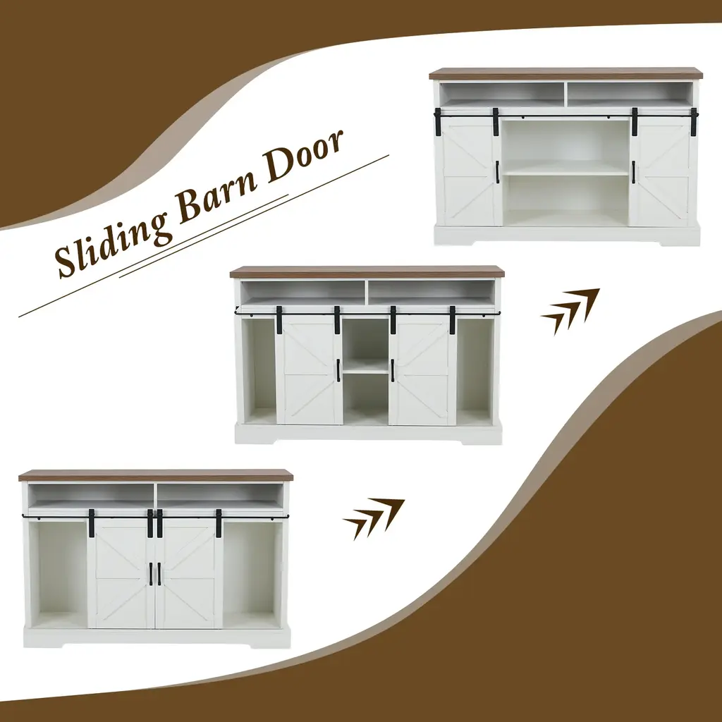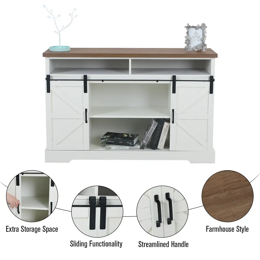Phi Villa Farmhouse Sliding Double Barn Door Cabinet Tv Stand For Tvs Up To 55"