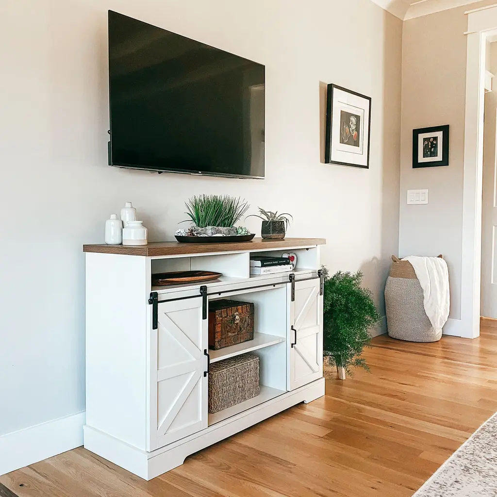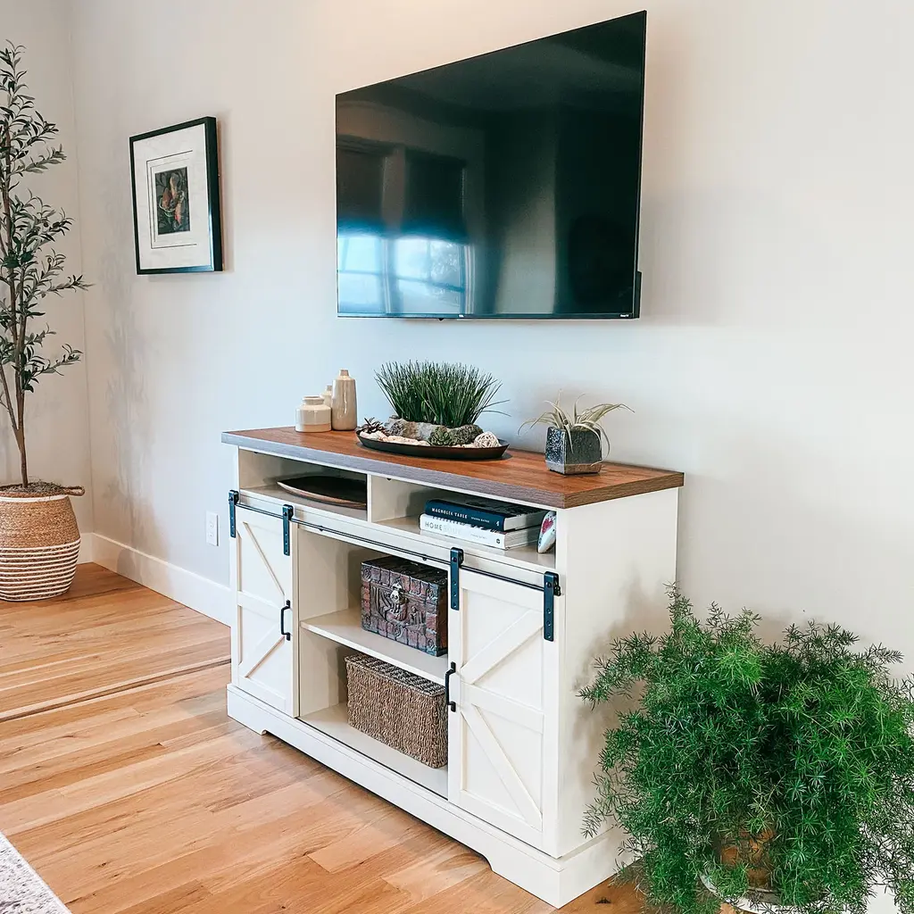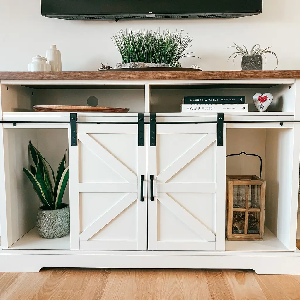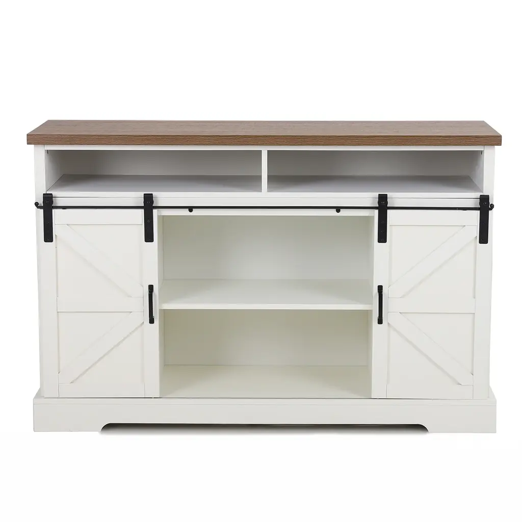 Phi Villa Farmhouse Sliding Double Barn Door Cabinet Tv Stand For Tvs Up To 55"