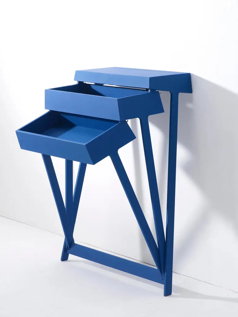 Pivot is a solid wood cabinet which is built on tall legs and features two drawers. The innovative aspect of this cabinet is the fact that the drawers can hinge, making it possible to open both drawers at the same time, which is impossible with a conventional set of drawers. This surprising cabinet is ideally suited to storing small items and everyday necessities in order to make sure these are always in the same place. Very useful during morning rush hour at home!