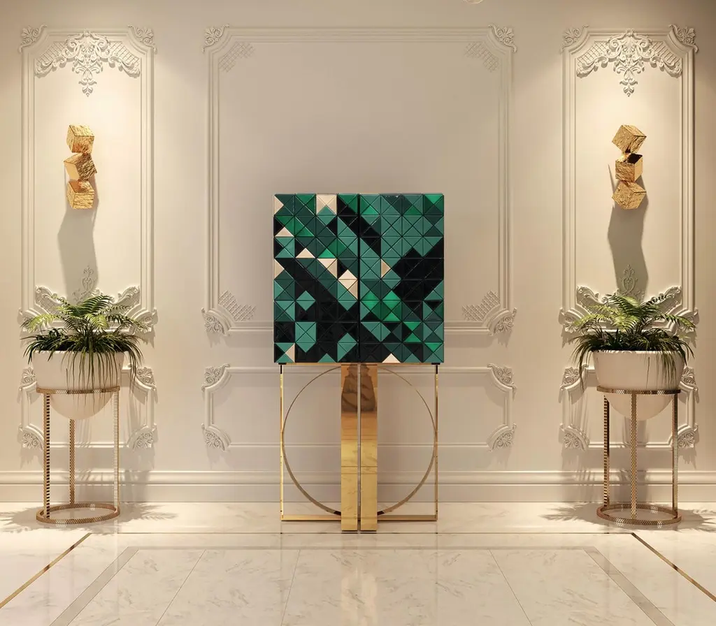 Pixel Green Cabinet - Hand-Crafted Joinery & Polished Brass - Boca Do Lobo
