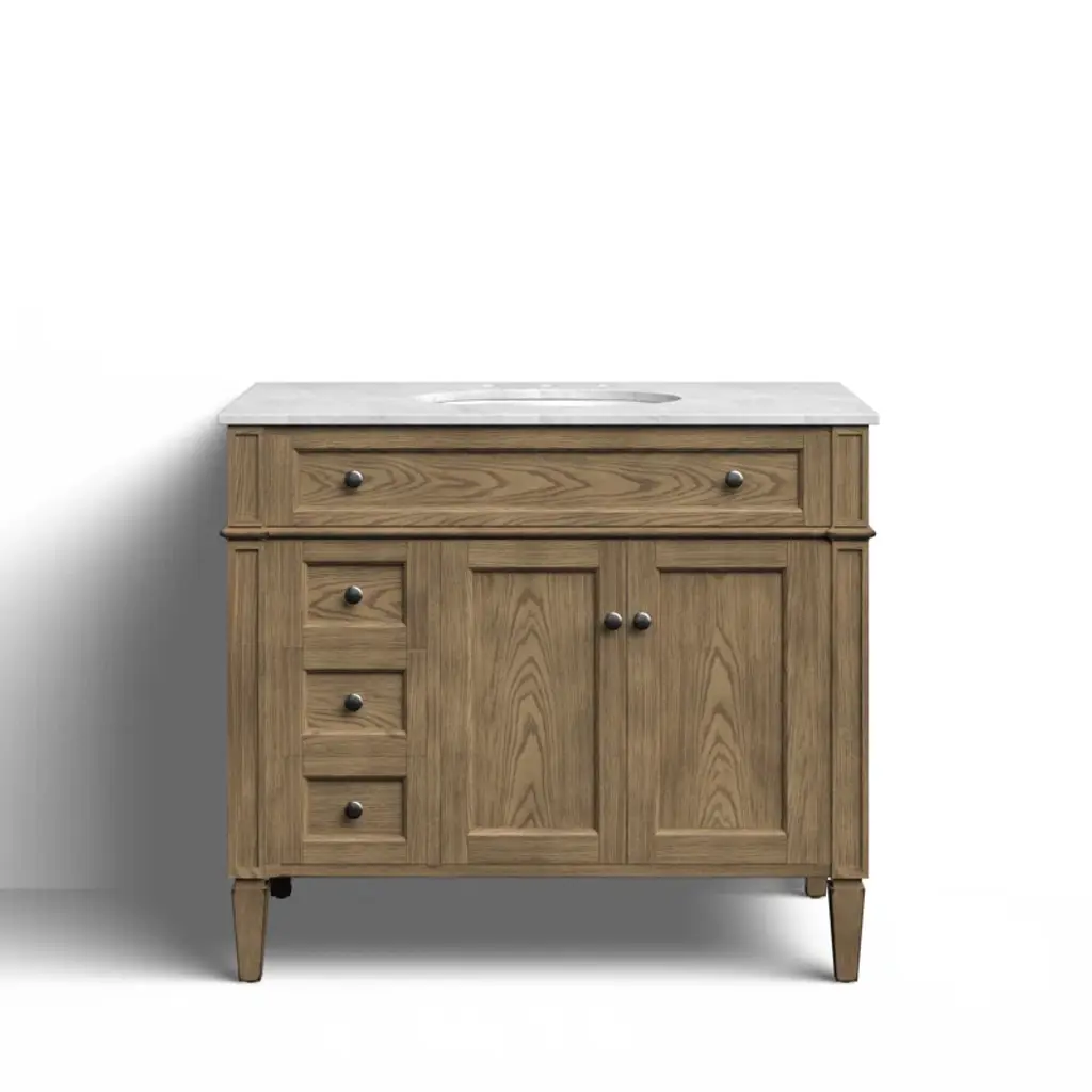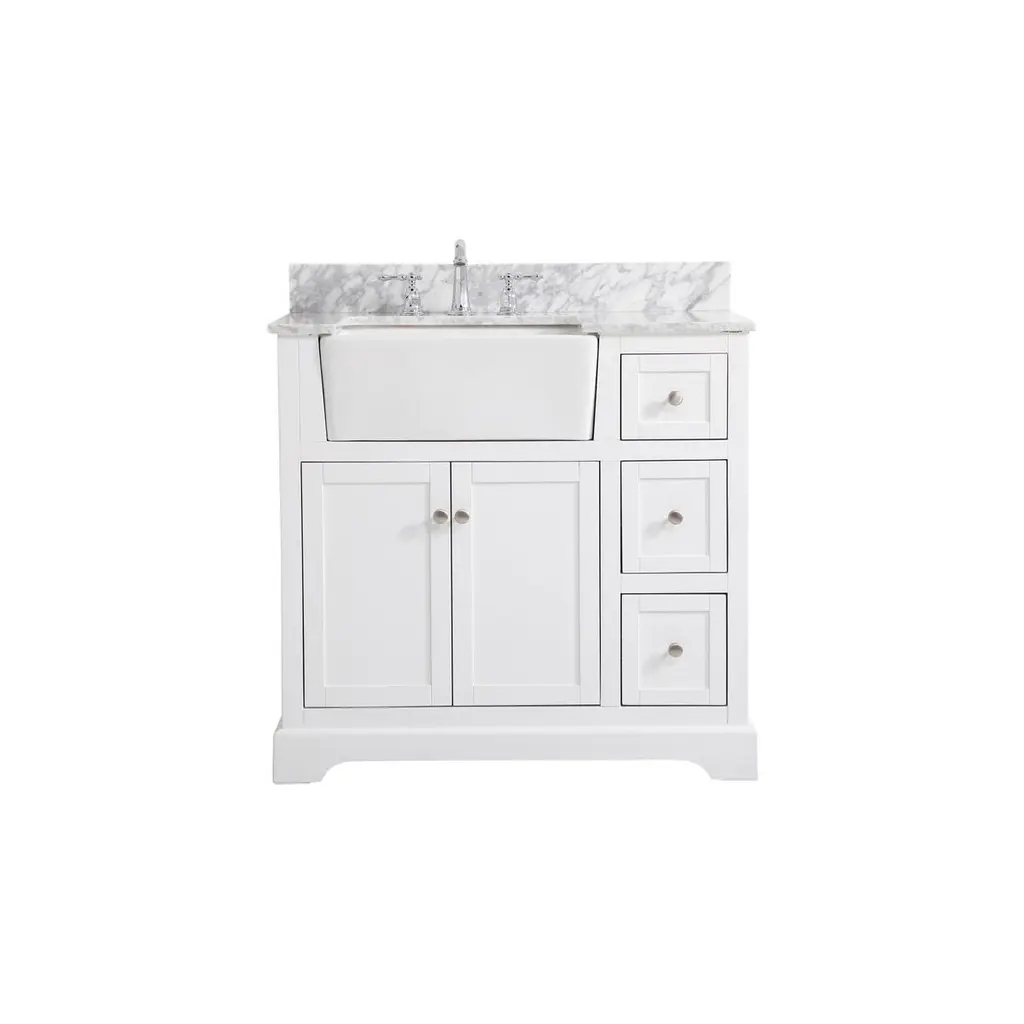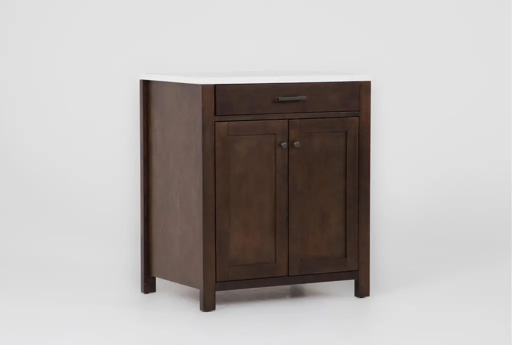Pollie Brown Wood 2 Door 1 Drawer Cabinet With White Faux Marble