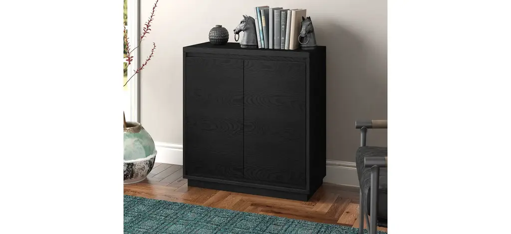 This sturdy and compact Presque Accent Cabinet is designed to give you a flexible storage option wherever you need it, whether it's for office supplies, closet overflow, or just the various knick-knacks and doo-dads that don't have a space of their own. Featuring an adjustable center shelf and cable management cut-out, this versatile cabinet can even help you organize printers, game consoles, or charging stations. The wood-grained finish adds warmth and casual appeal while the hidden storage behind the two cabinet doors allows you to hide away all the odds and ends that create visual clutter around your home.