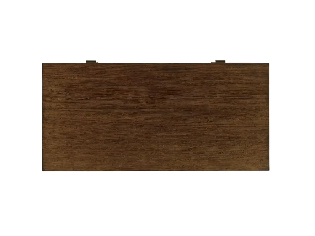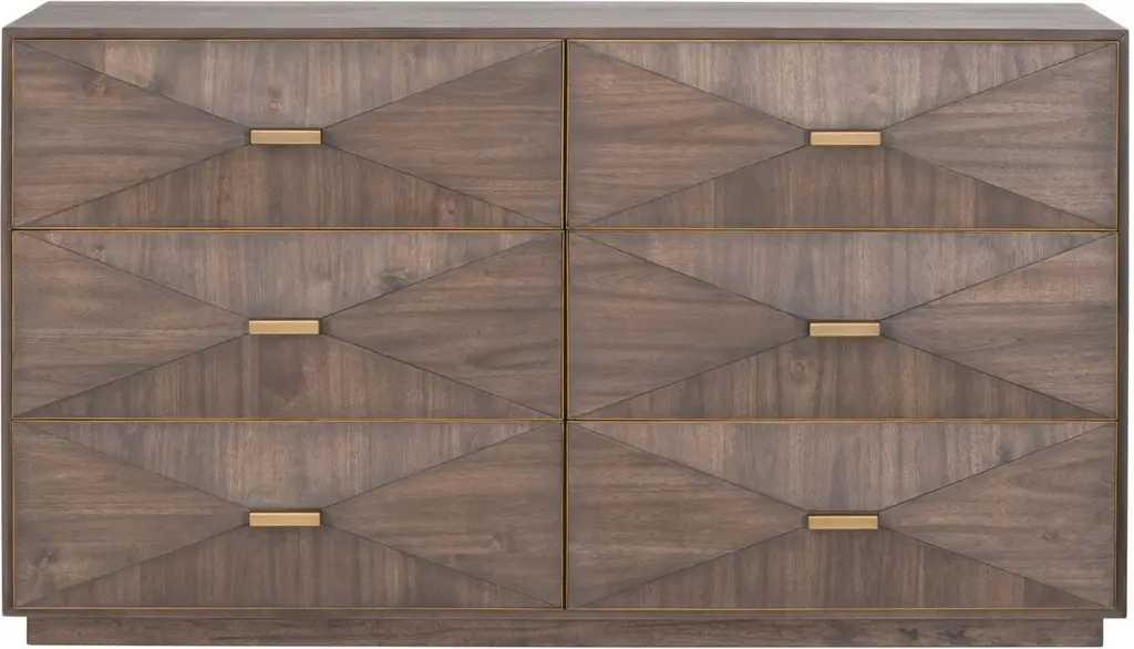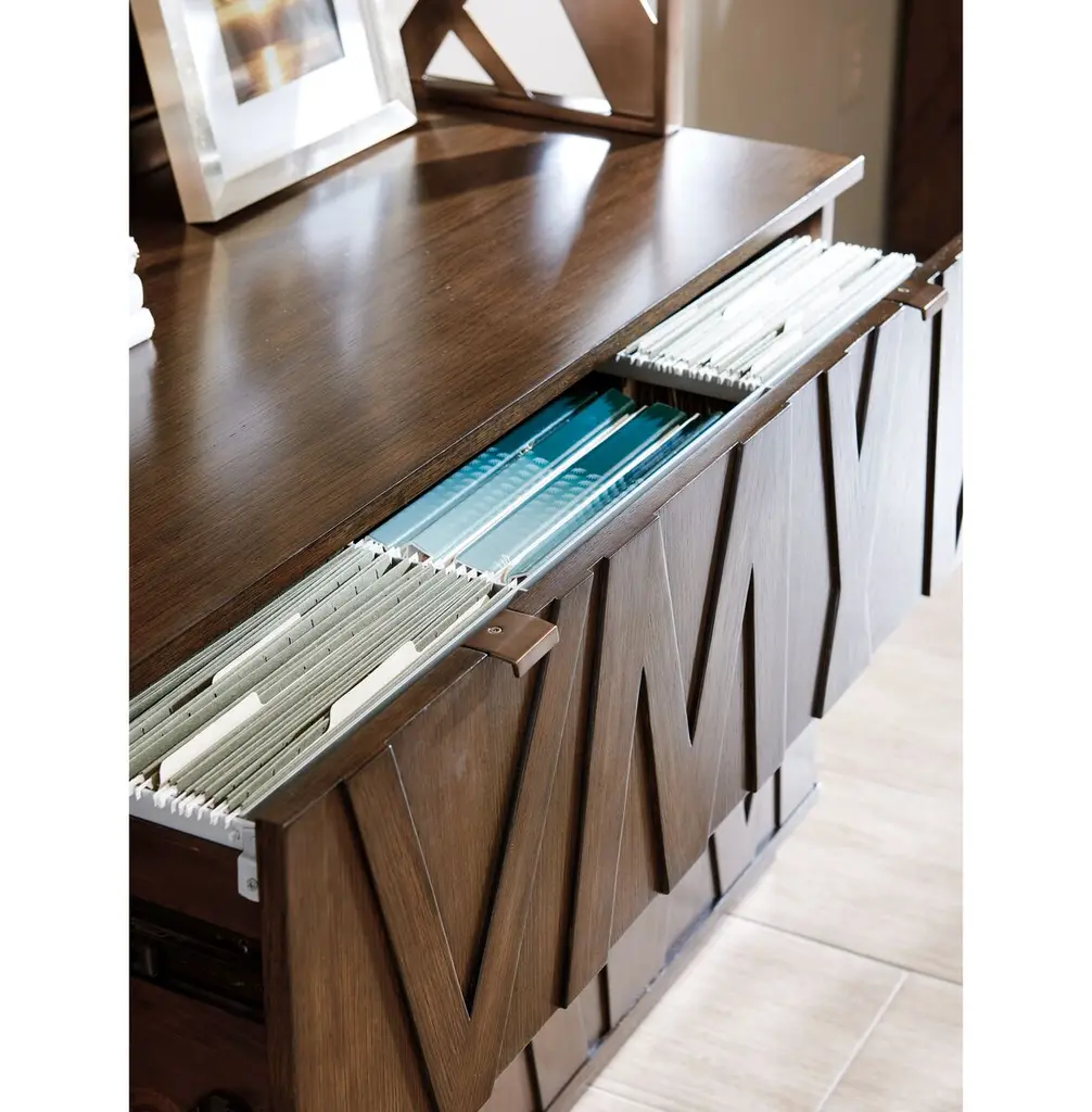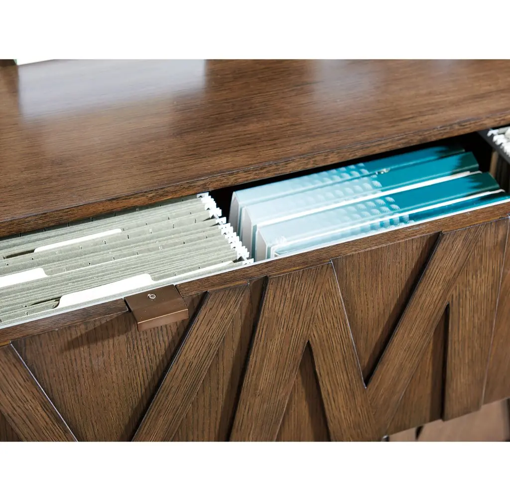 Artfully embellished with a recessed pedestal and abstract molding, this two-drawer sideboard adds a pleasing sense of depth and movement to any space. A mocha stain seals in the look, protecting the distinctive grain of its white oak veneers.
