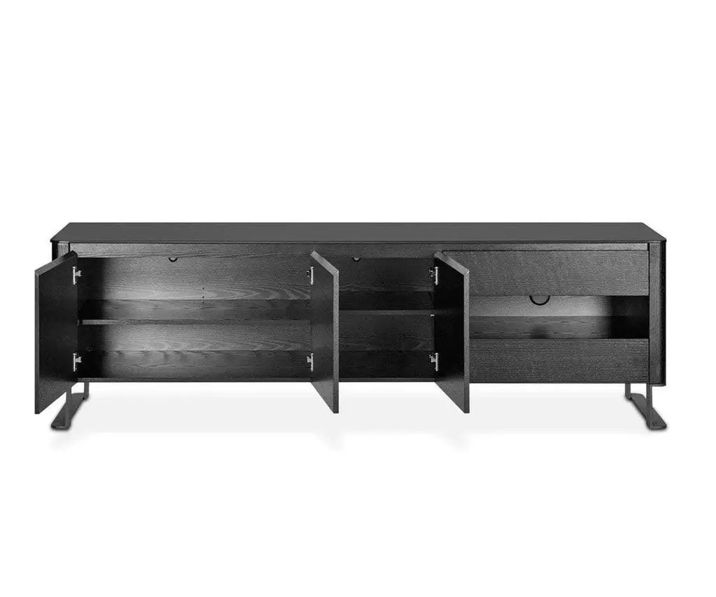 Streamlined and dynamic, the Pritz Media Stand packs a versatile punch. The masculine unit is elevated with modern feet, creating a floating effect. Two small drawers, an open niche and three cabinets provide ample storage space for all of your media.