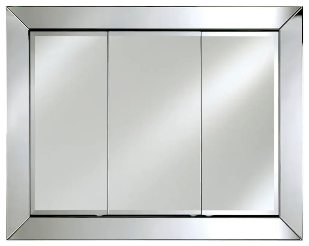 Clean mirrored Contemporary lines. Anodized Aluminum construction, 3 adjustable 3/8" Thick Tempered Glass Shelves. Recessed or Optional Surface Mount