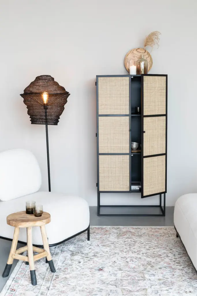 Bringing superb style into your home with the lovely Guuji cabinet by DF. It is made with rattan webbing doors and a metal frame - a refreshing combination that highlights natural and industrial vibes.