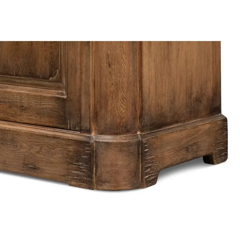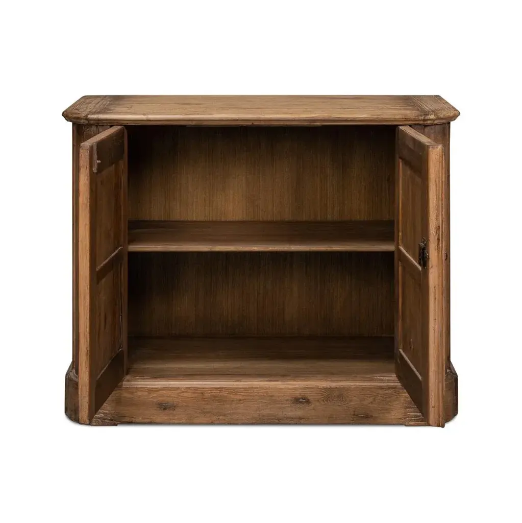 Reminiscent of a storied European past, this exquisite piece is crafted from reclaimed pine, it showcases a graceful antiqued warm brown finish, lending it a serene country style with rustic elegance. Perfectly sized at 47" W x 20" D x 36" H, the side cabinet fits seamlessly into your dining room, hallway, or any nook craving a touch of historic charm. With two paneled doors, that open to reveal ample storage, waiting to cradle your cherished keepsakes, fine china, or treasured linens. Dimensions: 47" W x 20" D x 36" H