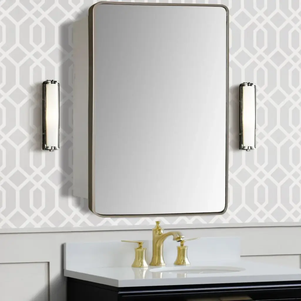 Rectangular Metal Frame Medicine Cabinet, Brushed Silver