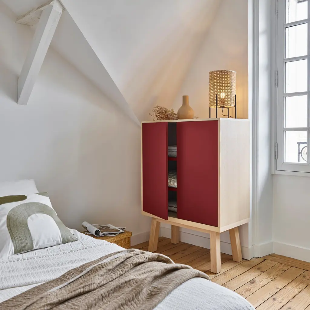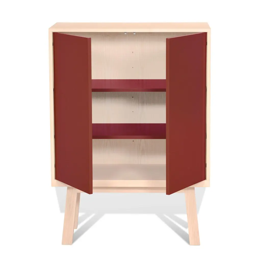 Red 2-Door Cabinet ÉGée In Ash Wood From Pefc-Certified French Forests