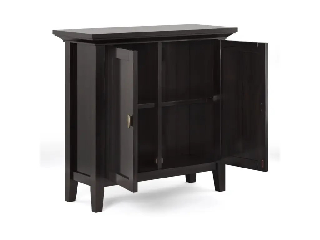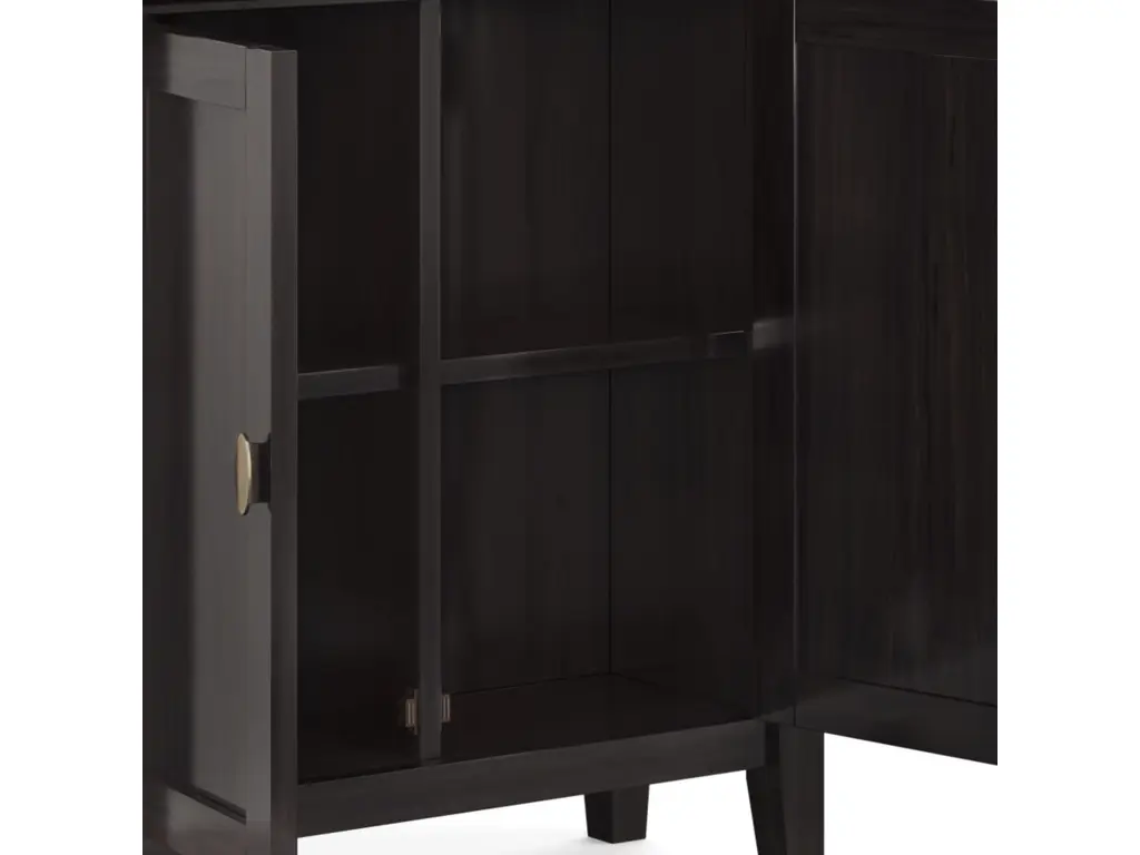 If you want to solve your clutter and mess problem, look no further. We designed the sleek and compact Redmond Low Storage Cabinet as the answer to your storage needs. Two doors open to two adjustable shelves allowing you to reconfigure the layout to suit your needs. Display your fine china or decorative accents on dedicated display space for a clean, distinctive look.; Efforts are made to reproduce accurate colors, variations in color may occur due to computer monitor and photography; At Simpli Home we believe in creating excellent, high quality products made from the finest materials at an affordable price. Every one of our products come with a 1-year warranty and easy returns if you are not satisfied