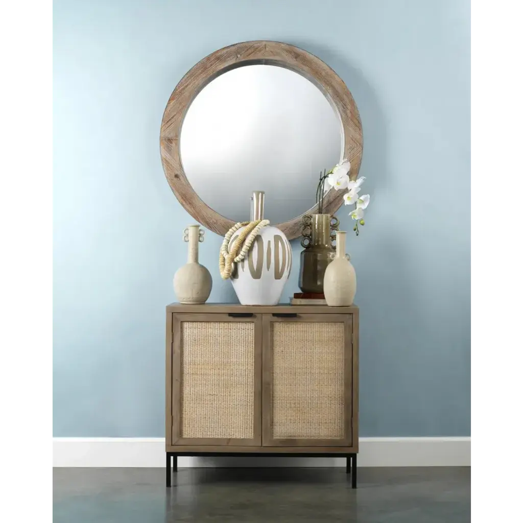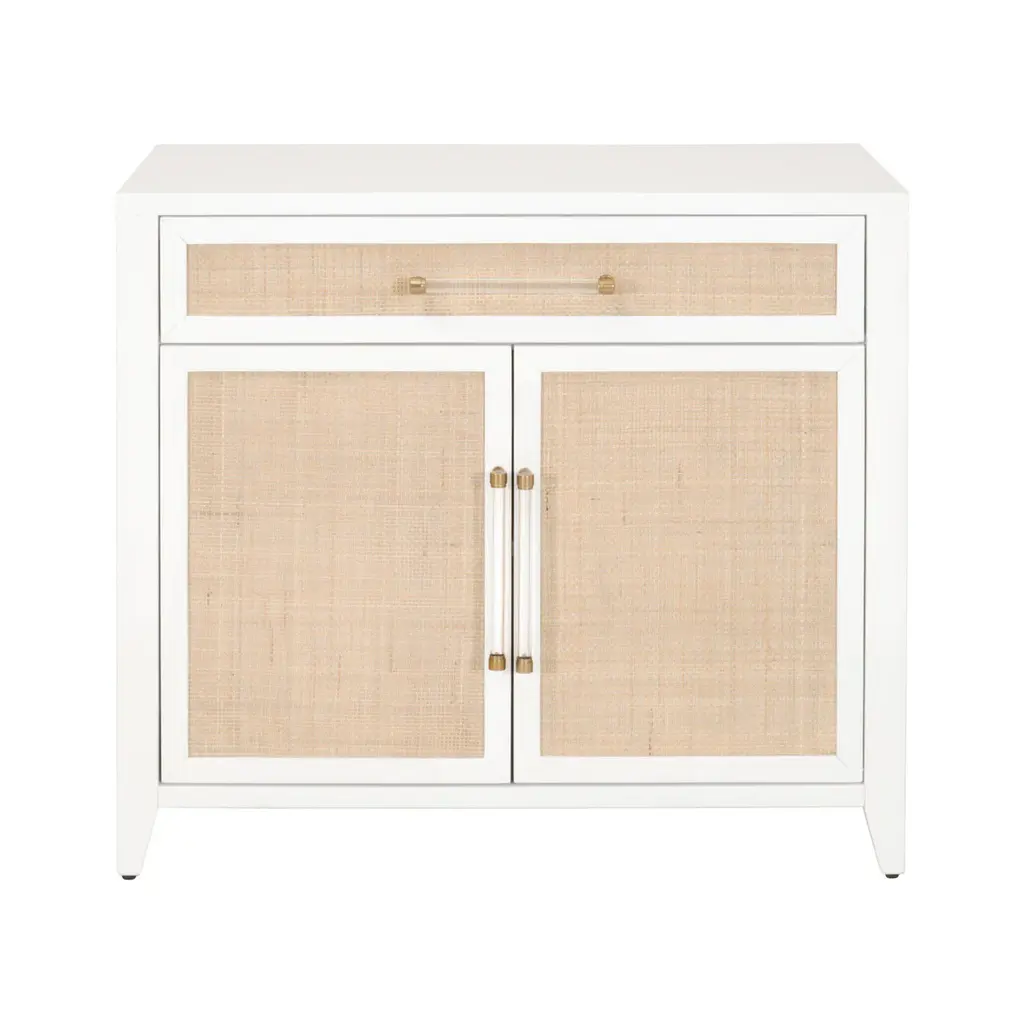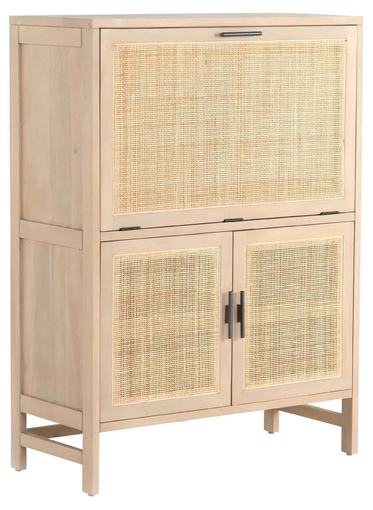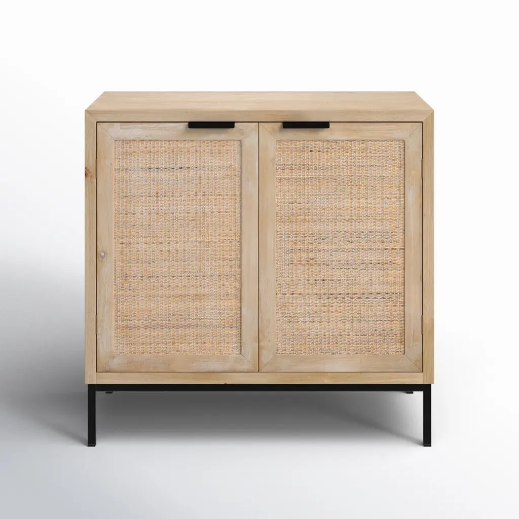 Natural materials meet modern functionality in our clean-lined accent cabinet. Crafted of an eye-catching mix of wood, iron and rattan front panels, this cabinet offers organic appeal and rich textural dimension. Impeccably scaled it makes for great storage for home offices, hallways and smaller spaces.