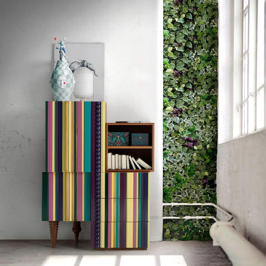 Reina Cabinet by Lola GlamourDimensions: D 42 x W 93 x H 127 cmMaterials: Wood.We are Félix and Désirée Ramos, brothers and product designers of our brand, Lola Glamour.We are interested in the singular, the different, the beauty, and the balance of color and materials. We have the ability to observe and the ability to translate any beautiful object into a piece of furniture.We are proud of having created our own style, a way of understanding design, which allows us to tell stories and connect with the souls of people and spaces.Lola Glamor is a Spanish company from Soria, which has designed and manufactured unique furniture in noble woods, with artisanal construction and extraordinary finishes since 1995. Artistic furniture that is customized in size and finish according to the client's needs.We offer original furnishing solutions for professionals and individuals from any country in the world, mixing materials, volumes, motifs, and colors that achieve their own style.We are, above all, the sum of a team of people who contribute their dedication and commitment to a unique level of demand, detail, and quality.