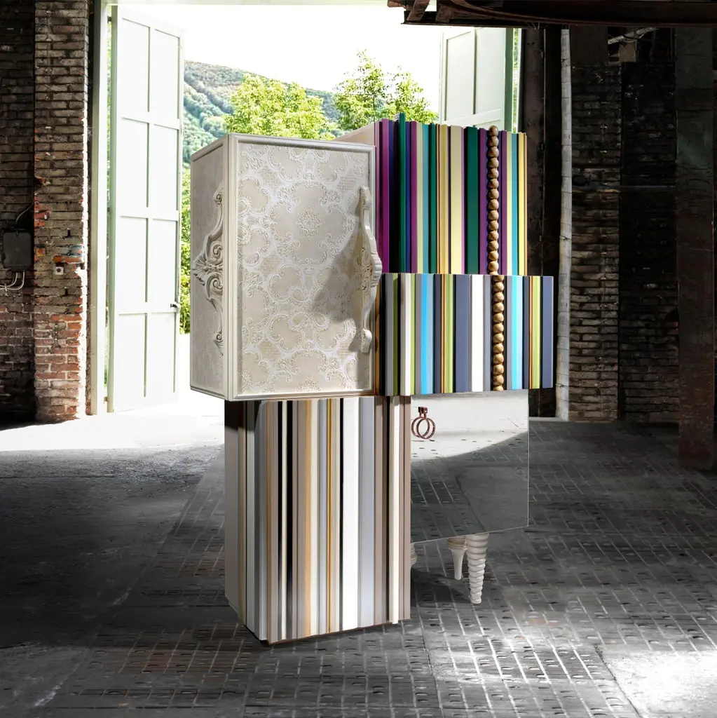 Reina Cabinet by Lola GlamourDimensions: D 45 x W 120 x H 168 cmMaterials: Wood.We are Félix and Désirée Ramos, brothers and product designers of our brand, Lola Glamour.We are interested in the singular, the different, the beauty, and the balance of color and materials. We have the ability to observe and the ability to translate any beautiful object into a piece of furniture.We are proud of having created our own style, a way of understanding design, which allows us to tell stories and connect with the souls of people and spaces.Lola Glamor is a Spanish company from Soria, which has designed and manufactured unique furniture in noble woods, with artisanal construction and extraordinary finishes since 1995. Artistic furniture that is customized in size and finish according to the client's needs.We offer original furnishing solutions for professionals and individuals from any country in the world, mixing materials, volumes, motifs, and colors that achieve their own style.We are, above all, the sum of a team of people who contribute their dedication and commitment to a unique level of demand, detail, and quality.