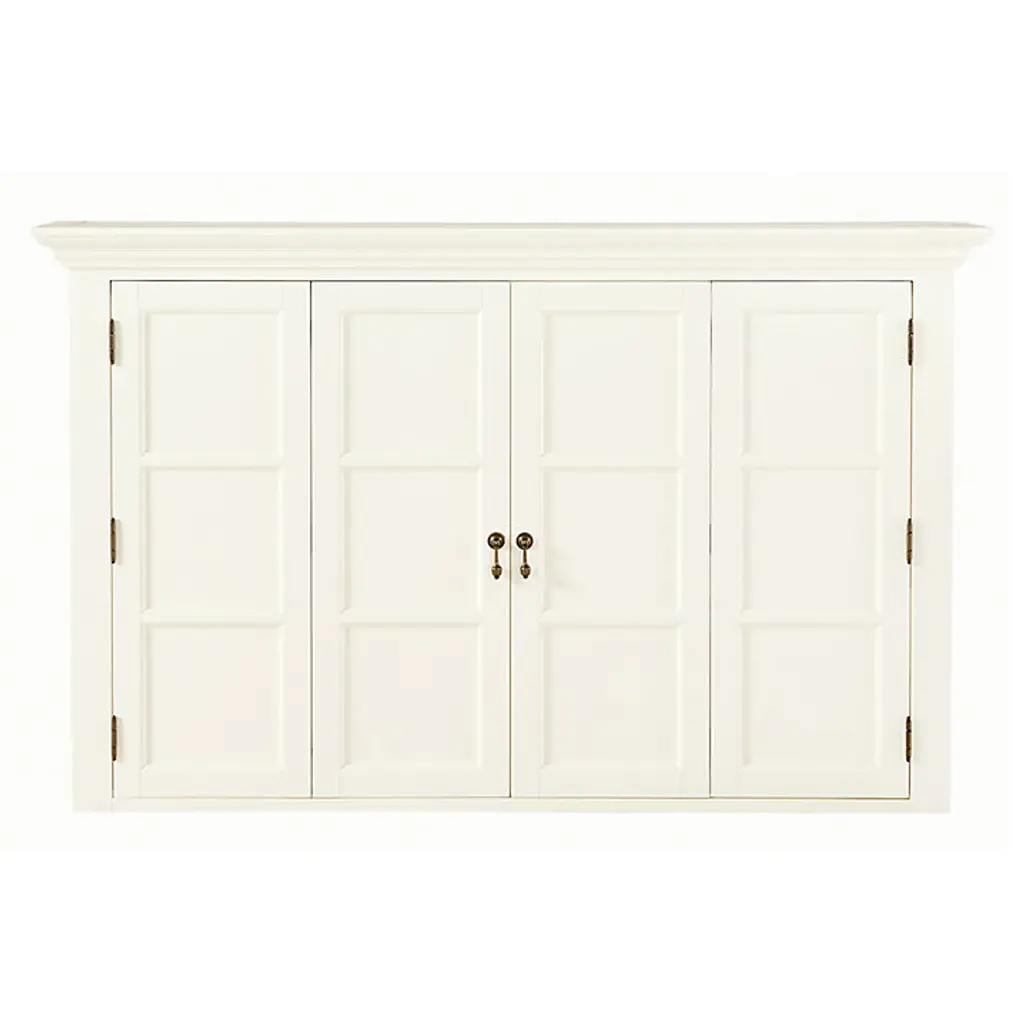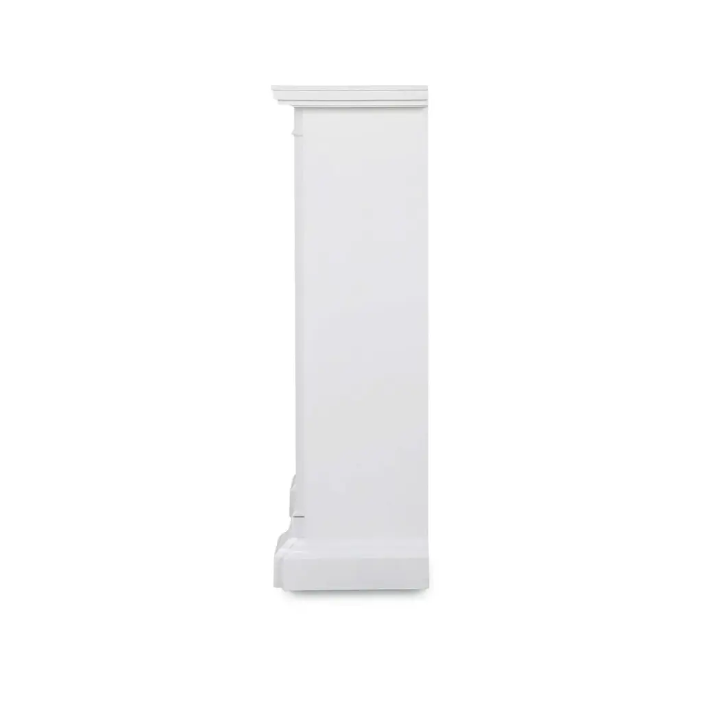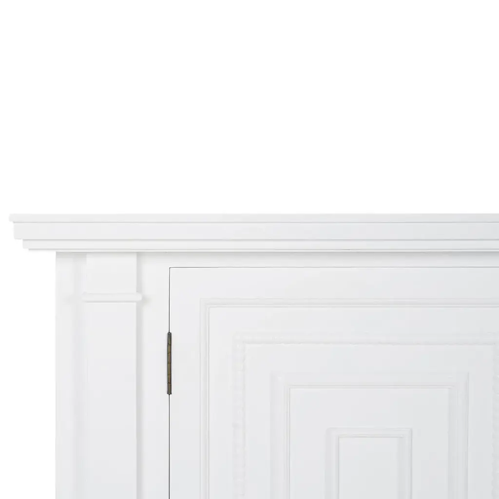 With its stunning chic and sophisticated design, this 42" tall cabinet will add a touch of class to any room. Perfect for keeping your space organized and stylish! Inspired by the French Renaissance period, this mahogany cabinet is hand-painted in our True White finish. The two paneled trimmed cupboard doors, with brass ring handles, open to reveal shelves with ample storage. The rectangular top, with column form styles, are all raised on a stepped plinth base. Dimensions: 60" W x 13" D x 42" H