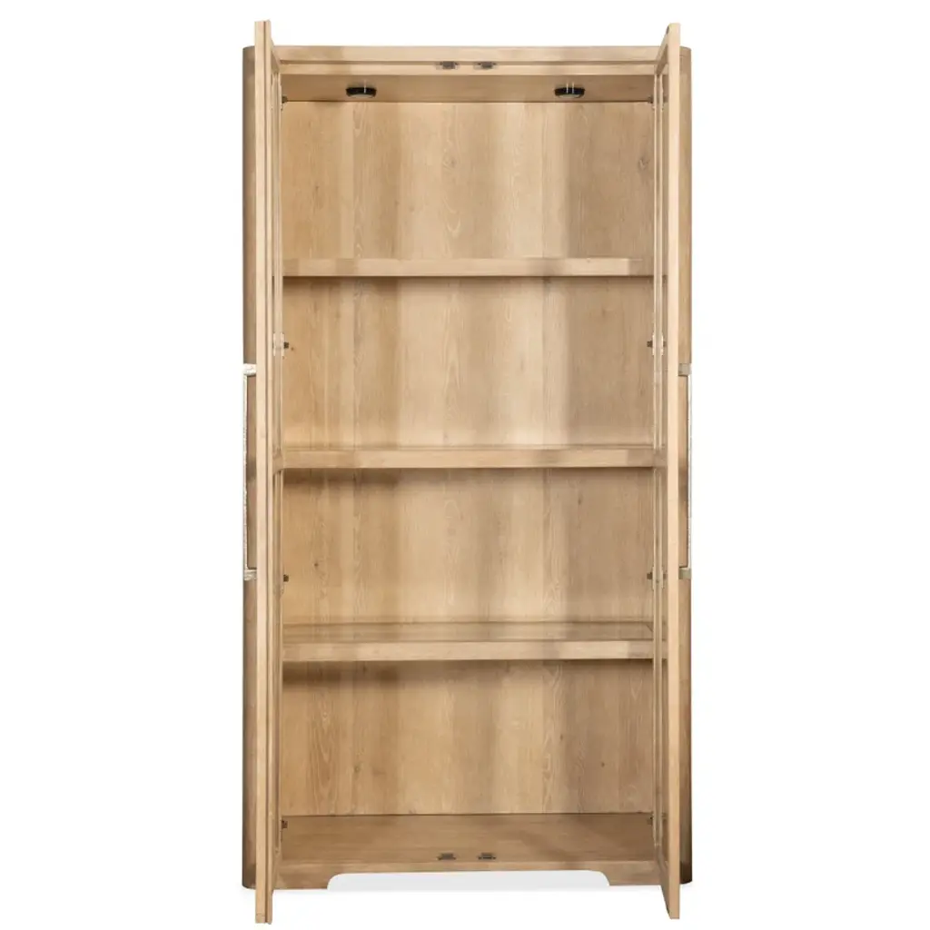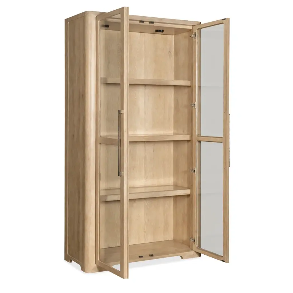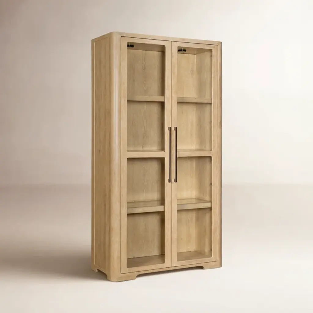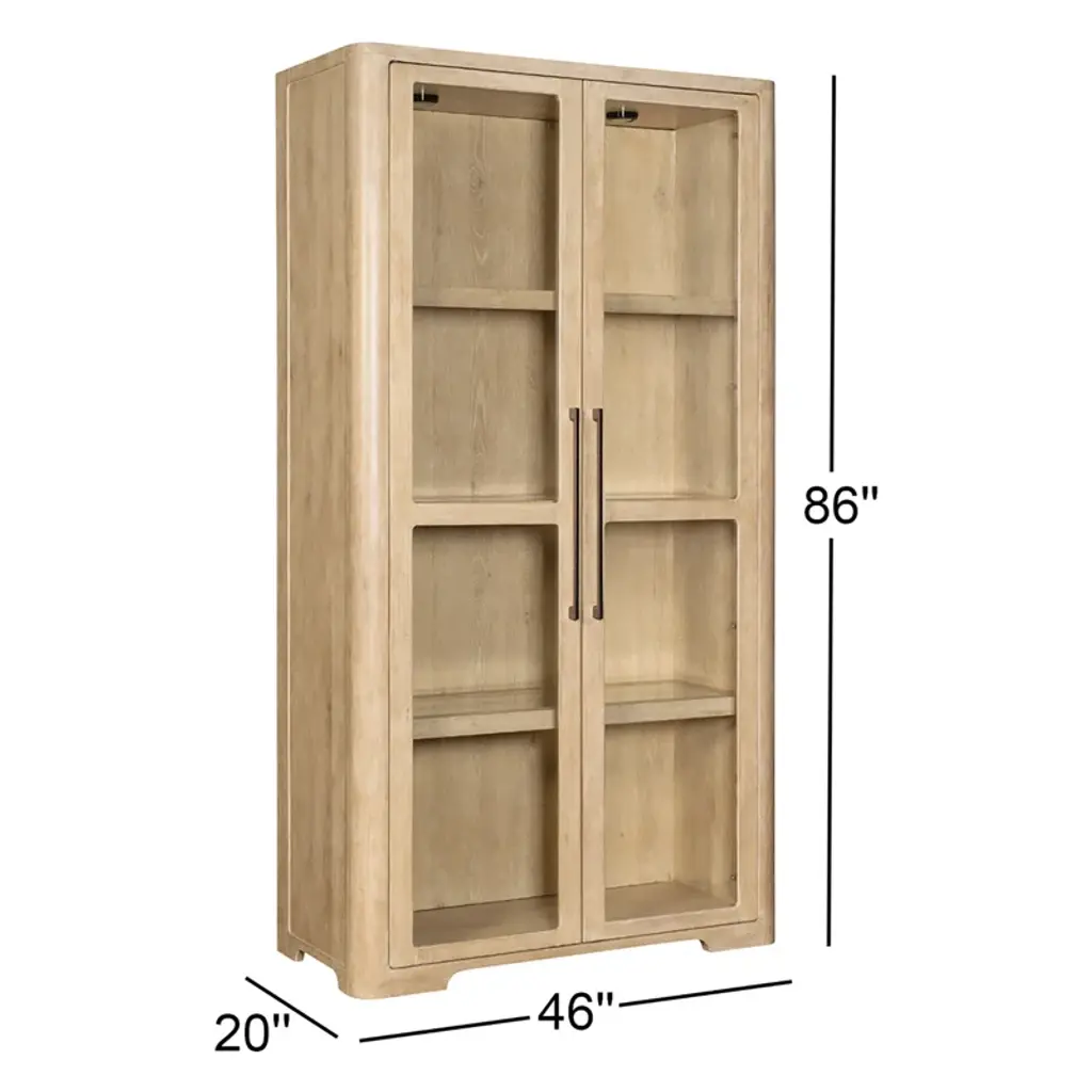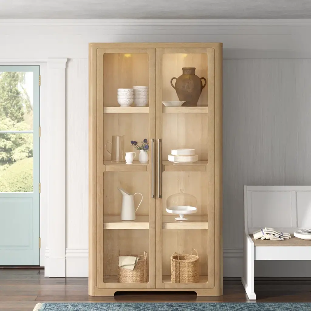 Elevate your living space with this display cabinet that effortlessly combines function and style. Crafted from a blend of solid and engineered wood, it features two hinged glass doors that open to reveal three adjustable glass and wood shelves, perfect for showcasing your favorite collectibles. The built-in halogen lighting adds a warm glow, illuminating your treasures and creating an inviting atmosphere. Plus, the cabinet comes with tip-restraining hardware for added safety. Make a statement in your home with this versatile and eye-catching piece.