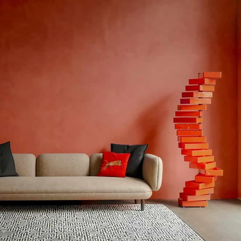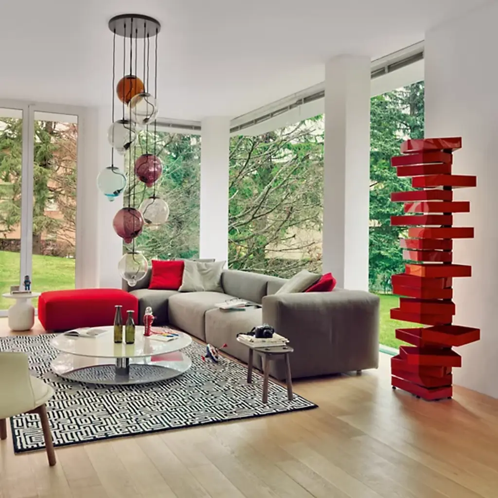 Elegant, open, and abstract, with a touch of playful physicality, the Revolving Cabinet from Cappellini provides storage and style in equal measure. A Shiro Kuramata design that resembles the gliding shapes of mobile sculpture and embodies his playful interpretations of modern Italian design, his designs have made it to the permanent collections of museums and are equally suited to add a rich accent to living spaces. The cabinet is anchored by a vertical metal stand and column, setting a series of glossy plastic drawers along its length, each one able to pivot and reveal or conceal its contents while collaborating with other drawers to create a unique and memorable shape.