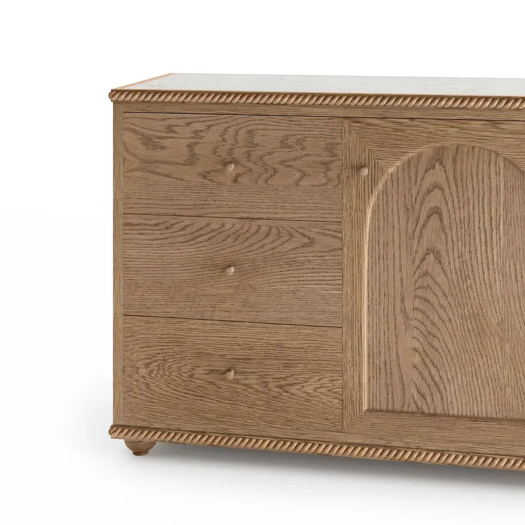 Rey Credenza, In Summer Aged Oak With Crema Marble, By August Abode