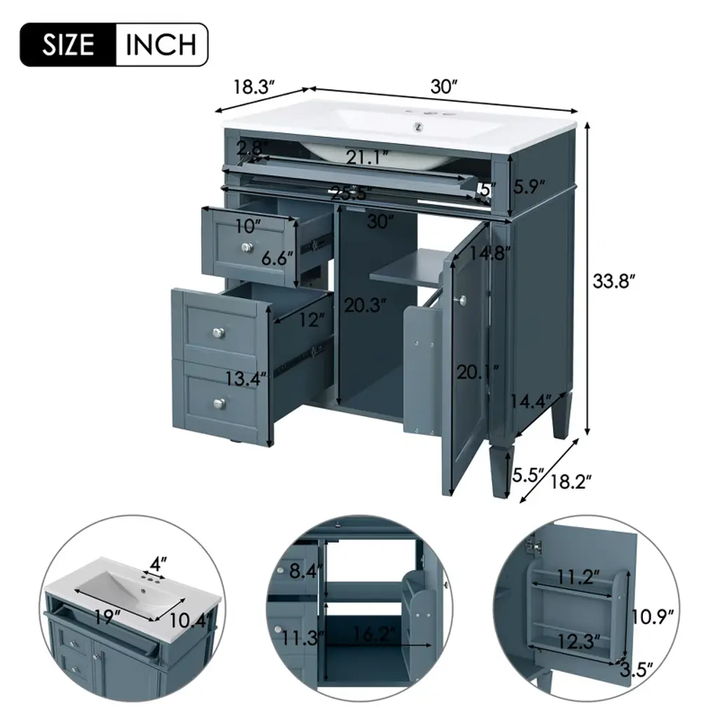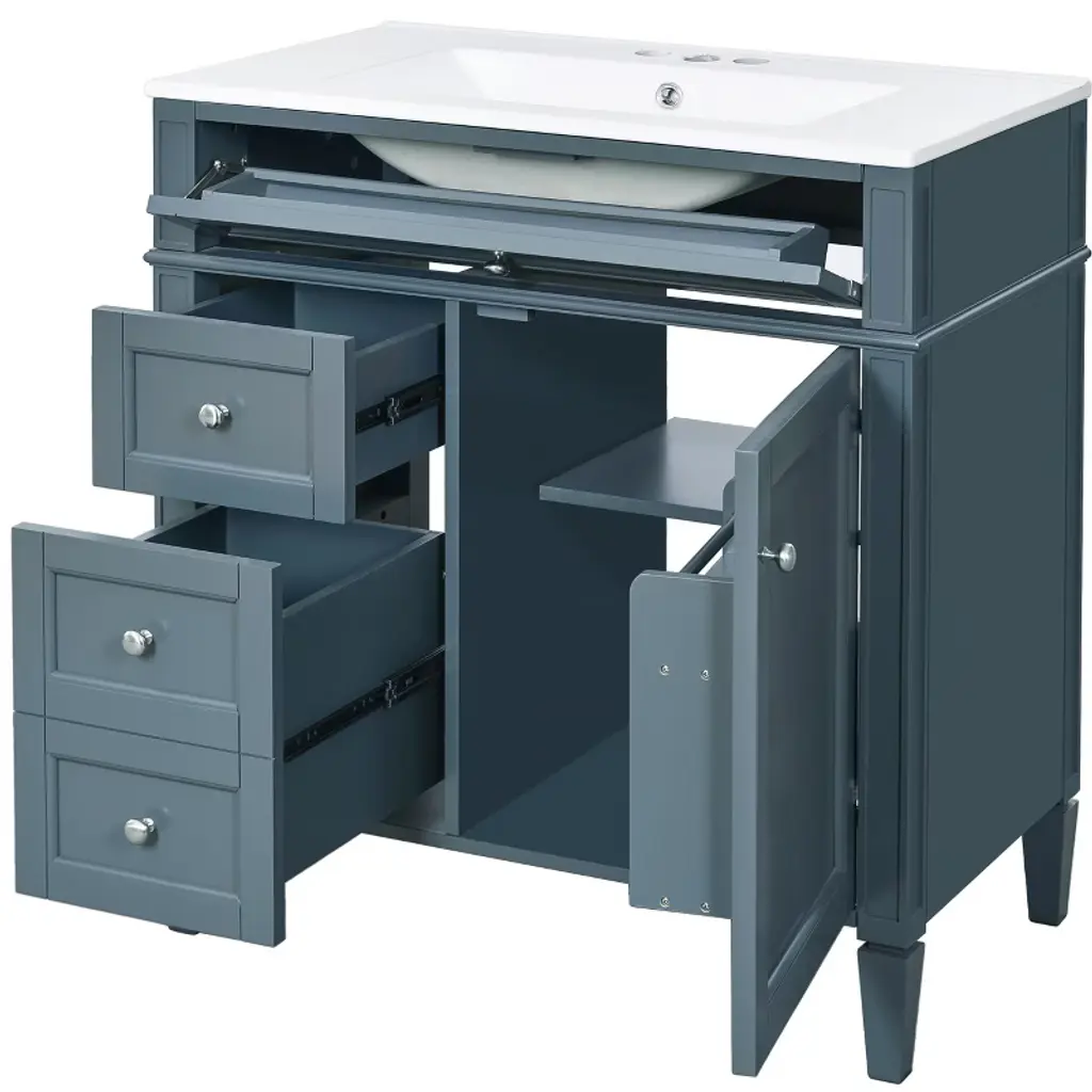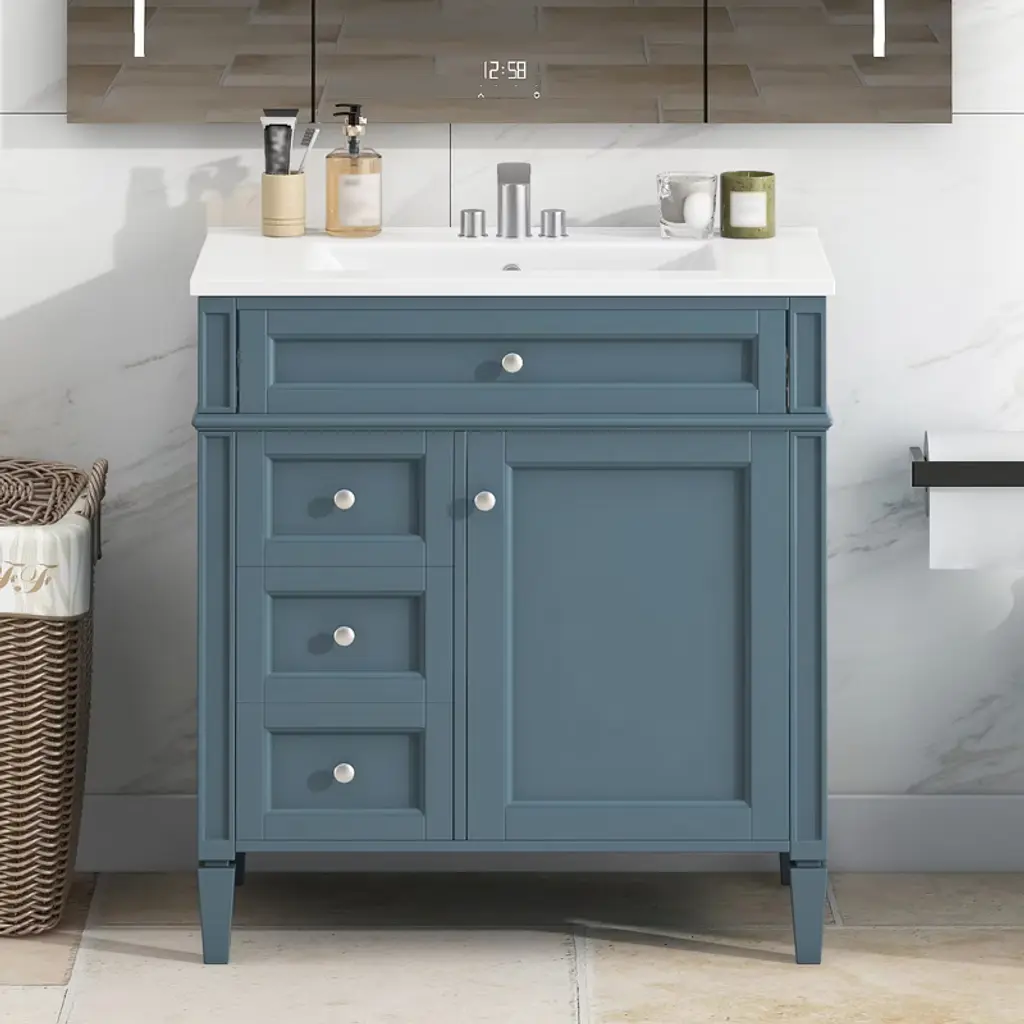 Ridstar 33.8 In. H Blue Bathroom Storage Cabinet With 2 Drawers And A Tip-out Drawer