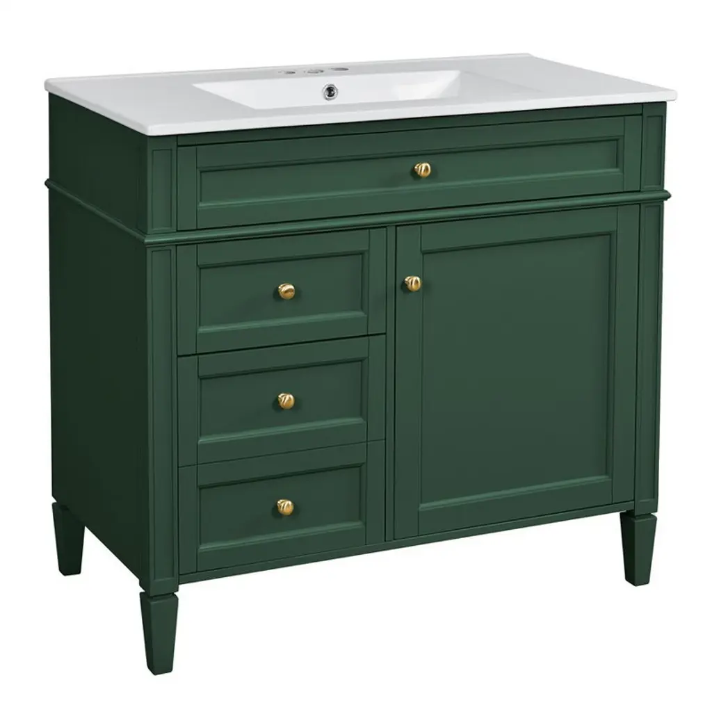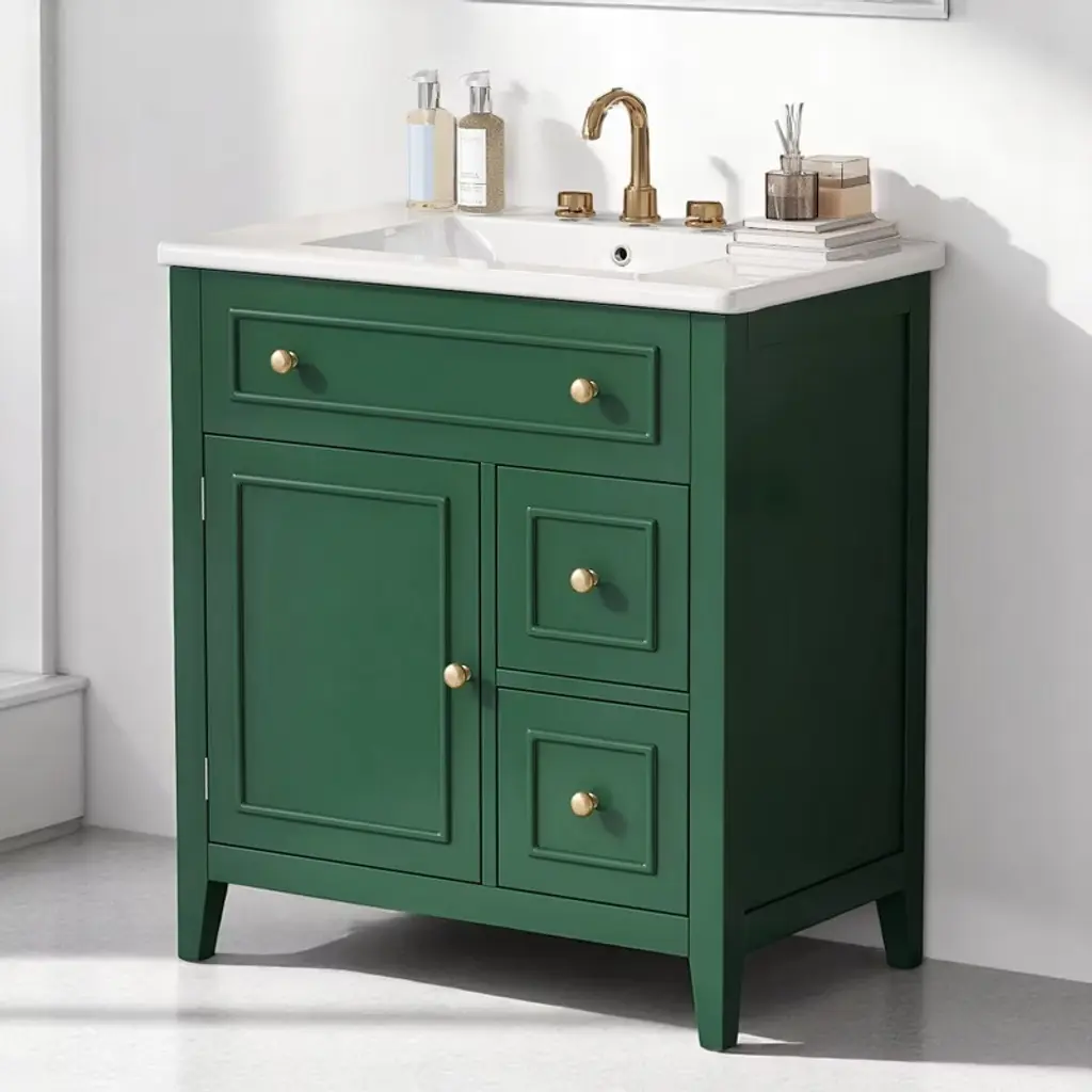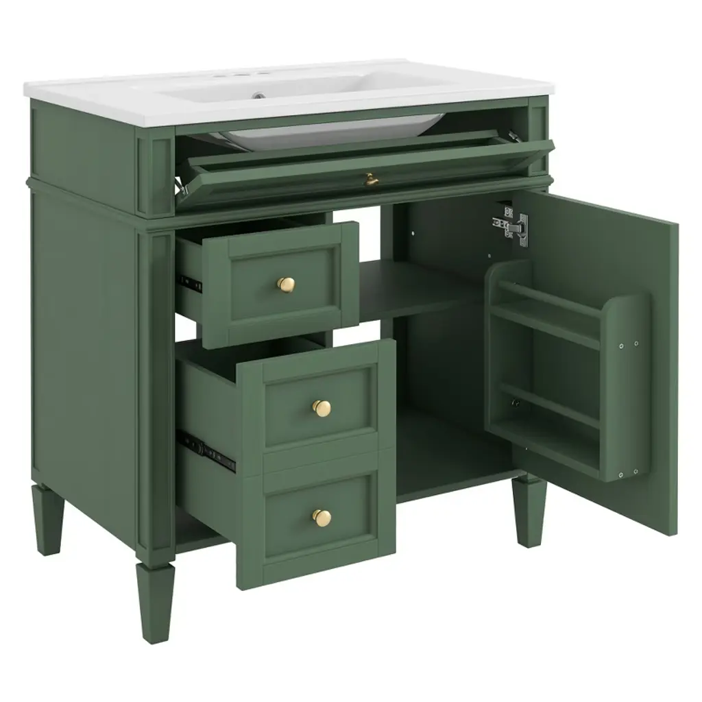 Ridstar 33.8 In. H Green Bathroom Storage Cabinet With 2 Drawers And A Tip-out Drawer