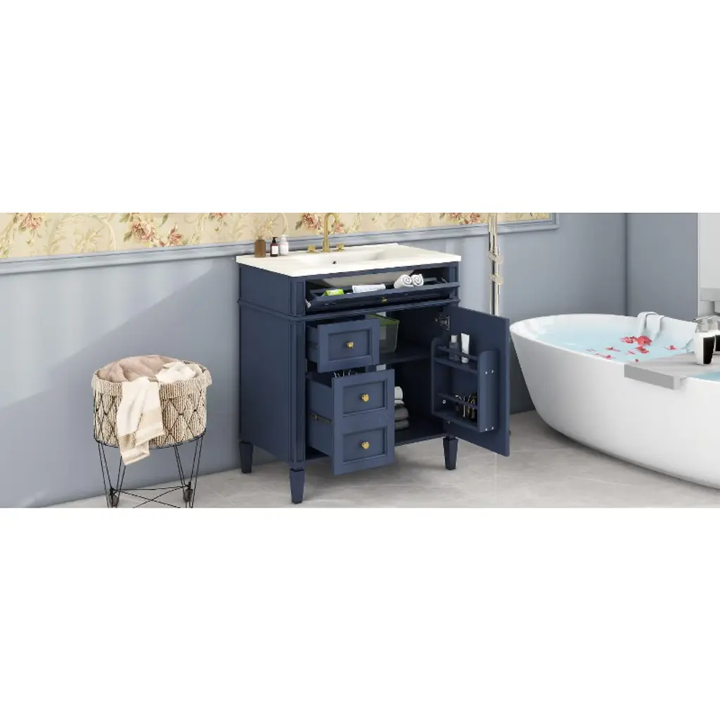 Ridstar 33 In. H Blue Bathroom Storage Cabinet With 2 Drawers And A Tip-out Drawer